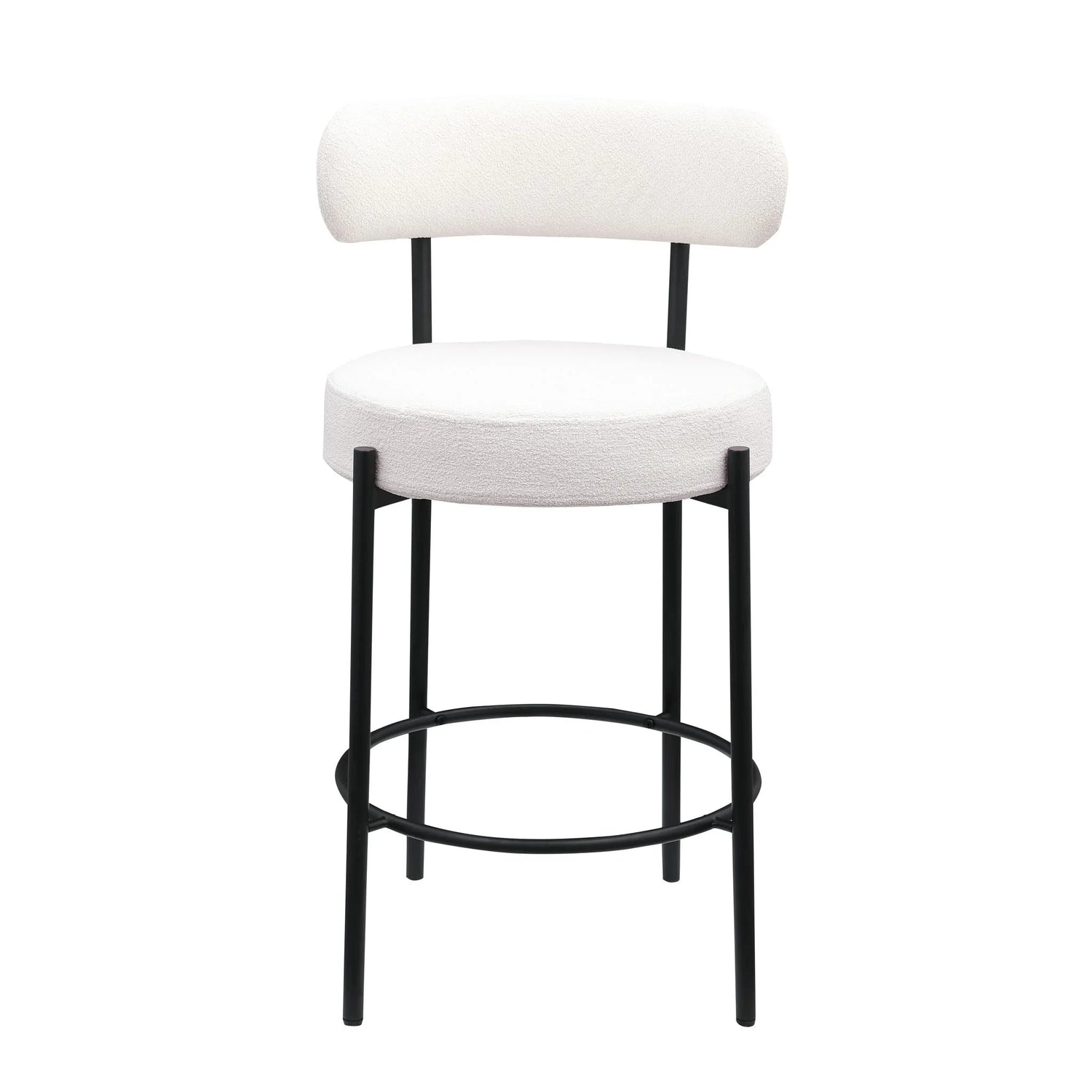 Designed for modern kitchens, breakfast nooks, and casual dining areas, this pair of counter-height stools brings warm texture and refined metal details to everyday seating. The cozy sherpa-upholstered round seat and low curved back create a welcoming perch for morning coffee or relaxed entertaining, while the slim brushed-brass legs keep the look light and contemporary.