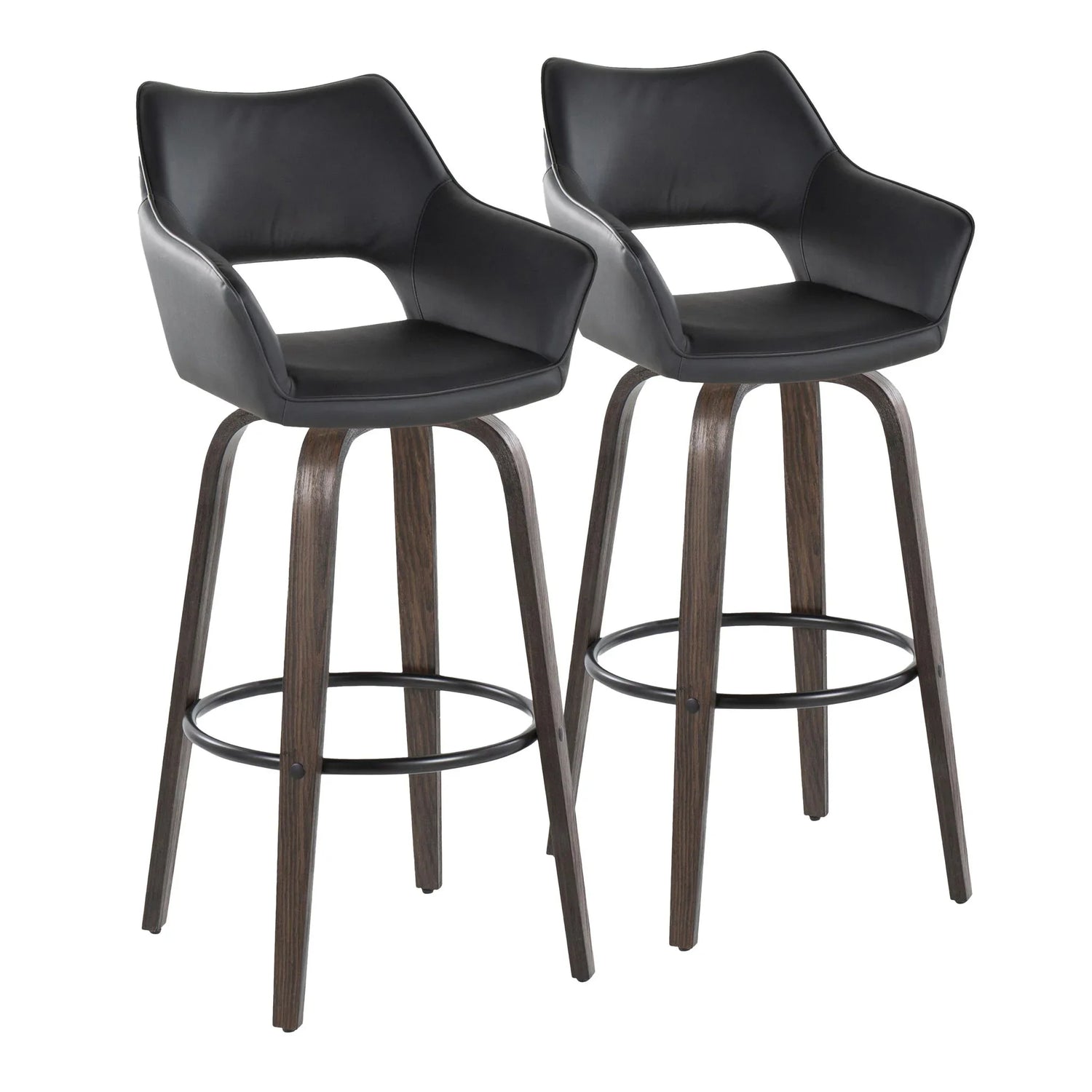 Mustang - Contemporary Fixed Height Barstool With Swivel With Round Footrest (Set of 2) - Walnut / Black