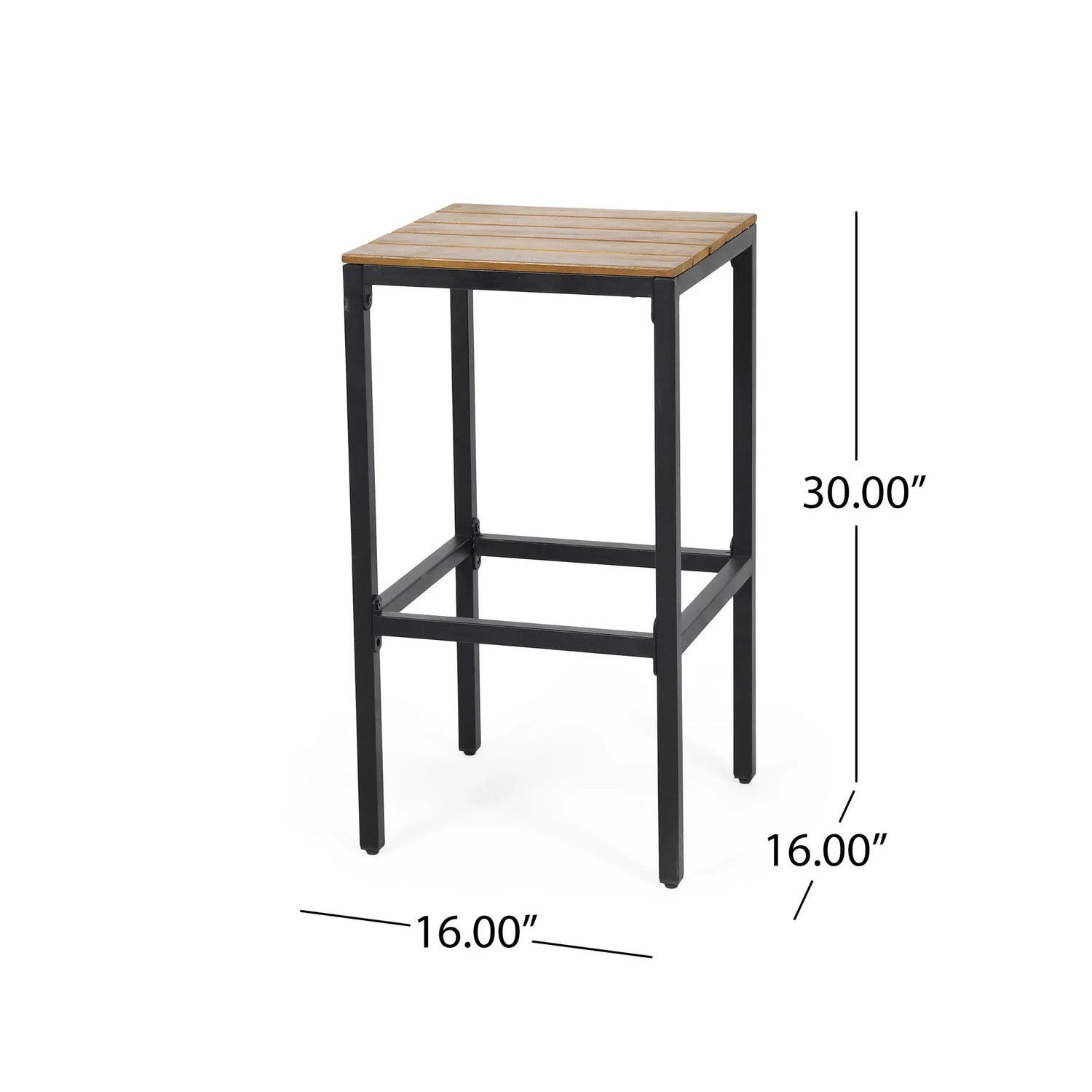 Outdoor Bar Stool With Slat Design And Metal Frame (Set of 2) - Teak / Black