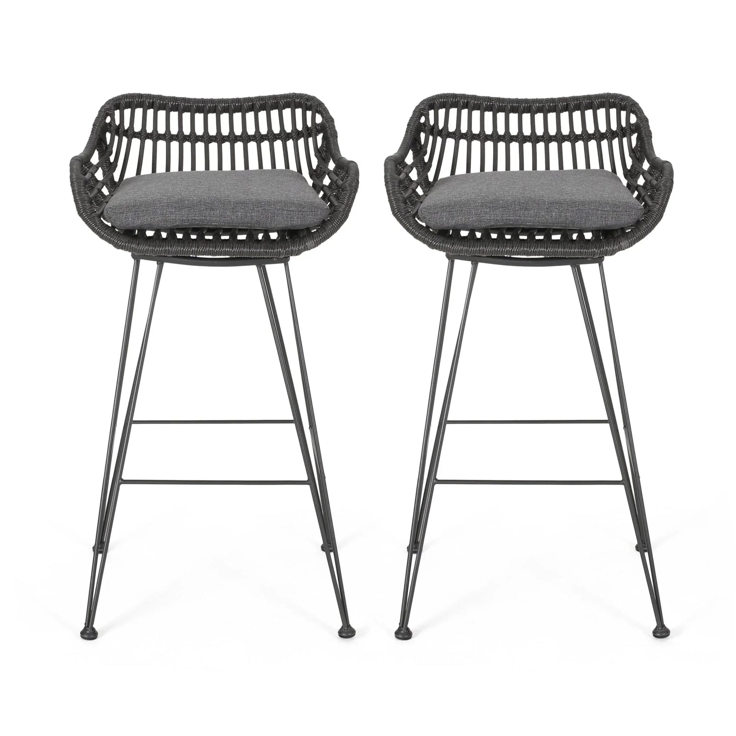 Outdoor Wicker Barstool With Cushions (Set of 2) - Gray