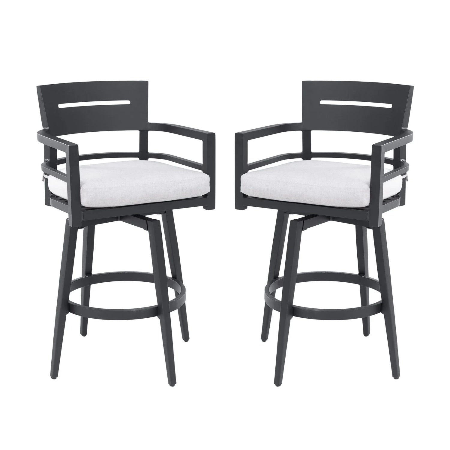 Modern Outdoor Swivel Bar Chairs, 360 Degree Rotation, Ergonomic Backrest, Armrests & Sunbrella Cushions, Weather Resistant (Set of 2) - Ember Black