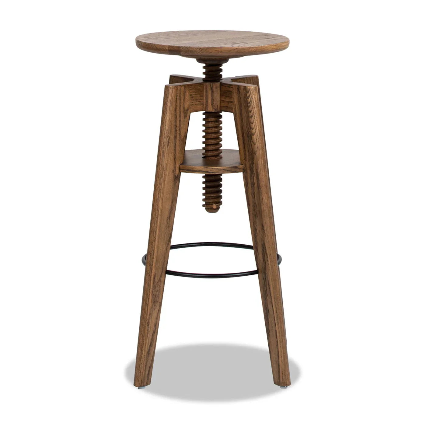 Every stool is crafted from solid wood with a walnut brown oak finish and a contrasting metal foot ring for everyday support. The height adjusts via a simple threaded seat—an elegant, mechanical detail that blends form and function—while the four‑leg base delivers a stable footprint. Sold individually, the Spencer stool works as a single accent or as a repeatable element around an island or bar.