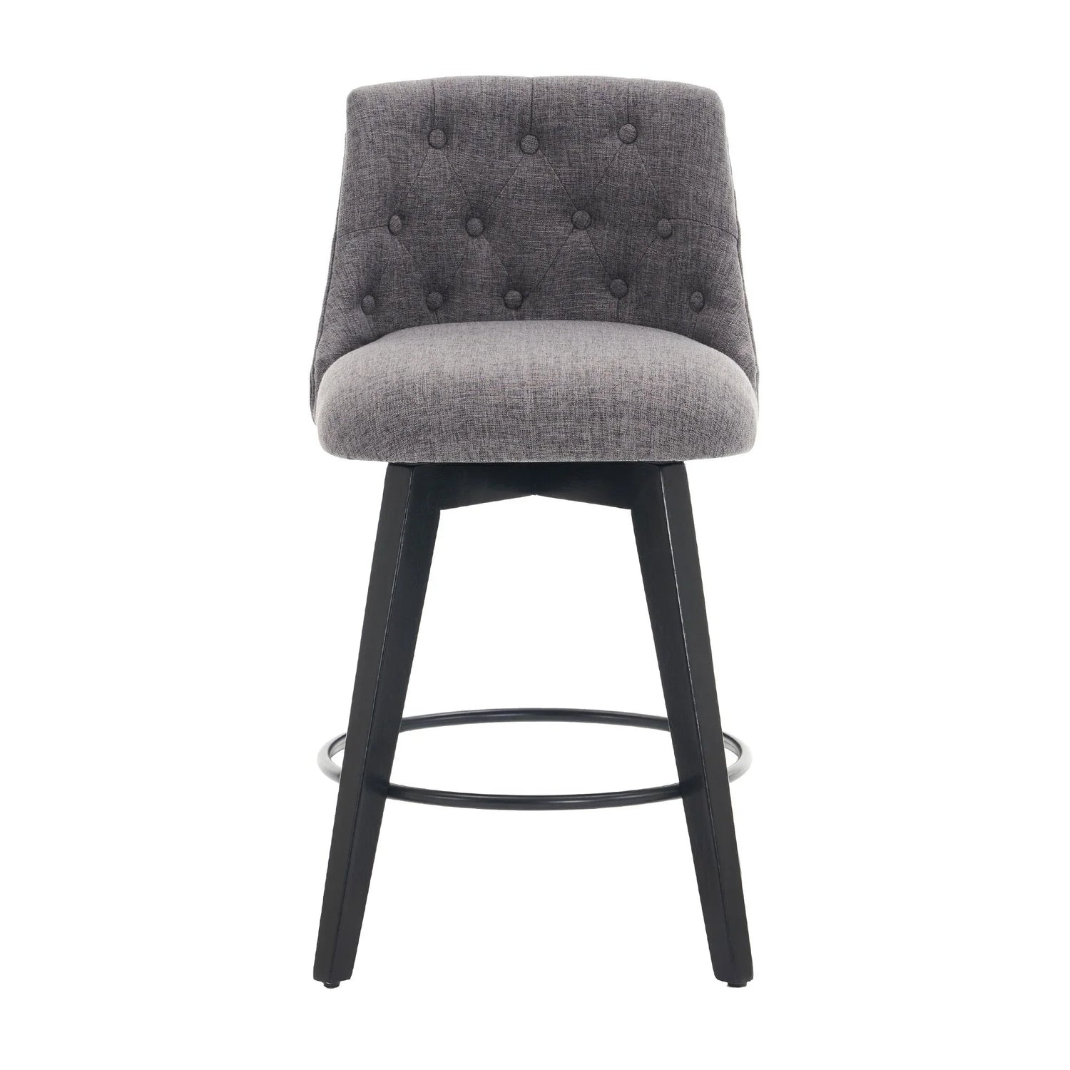 Designed for busy kitchens, casual dining nooks, and home bars, this set of two swivel bar stools blends everyday comfort with elevated, transitional style. The low-profile button-tufted back and gently rounded seat create an inviting perch for morning coffee or late-night conversations, while the 360° silent swivel makes moving in and out of the stool effortless without scraping or loud clicks.