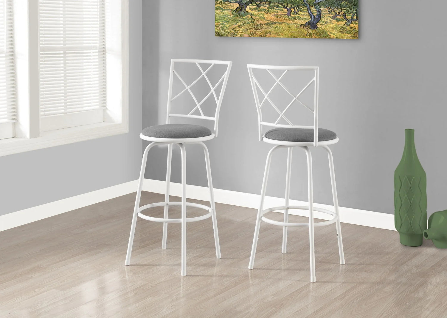 Simple, dependable seating for casual dining and home bars—this set of 2 swivel bar stools is for people who want modern, no-fuss seating that fits everyday life. With a clean geometric back and a padded seat that rotates a full 360°, these stools work well at a kitchen island, breakfast bar, or compact home bar where comfort and circulation matter.