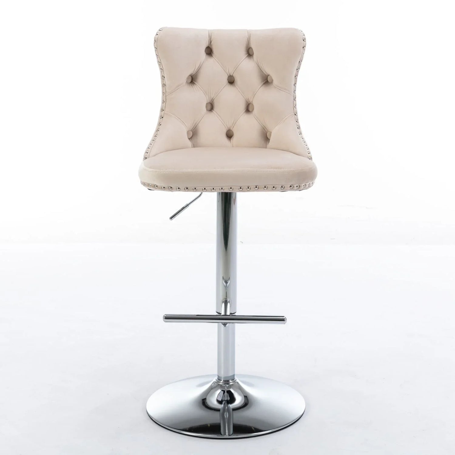 A polished pick for home bars, kitchen islands, and small dining nooks — this set of 2 swivel velvet barstools blends hotel‑style tufting with everyday adjustability. Designed for people who want a comfortable, elevated seat that still reads modern, the contoured back and padded velvet upholstery provide plush support whether you're working at the counter, serving guests, or enjoying a relaxed drink.
