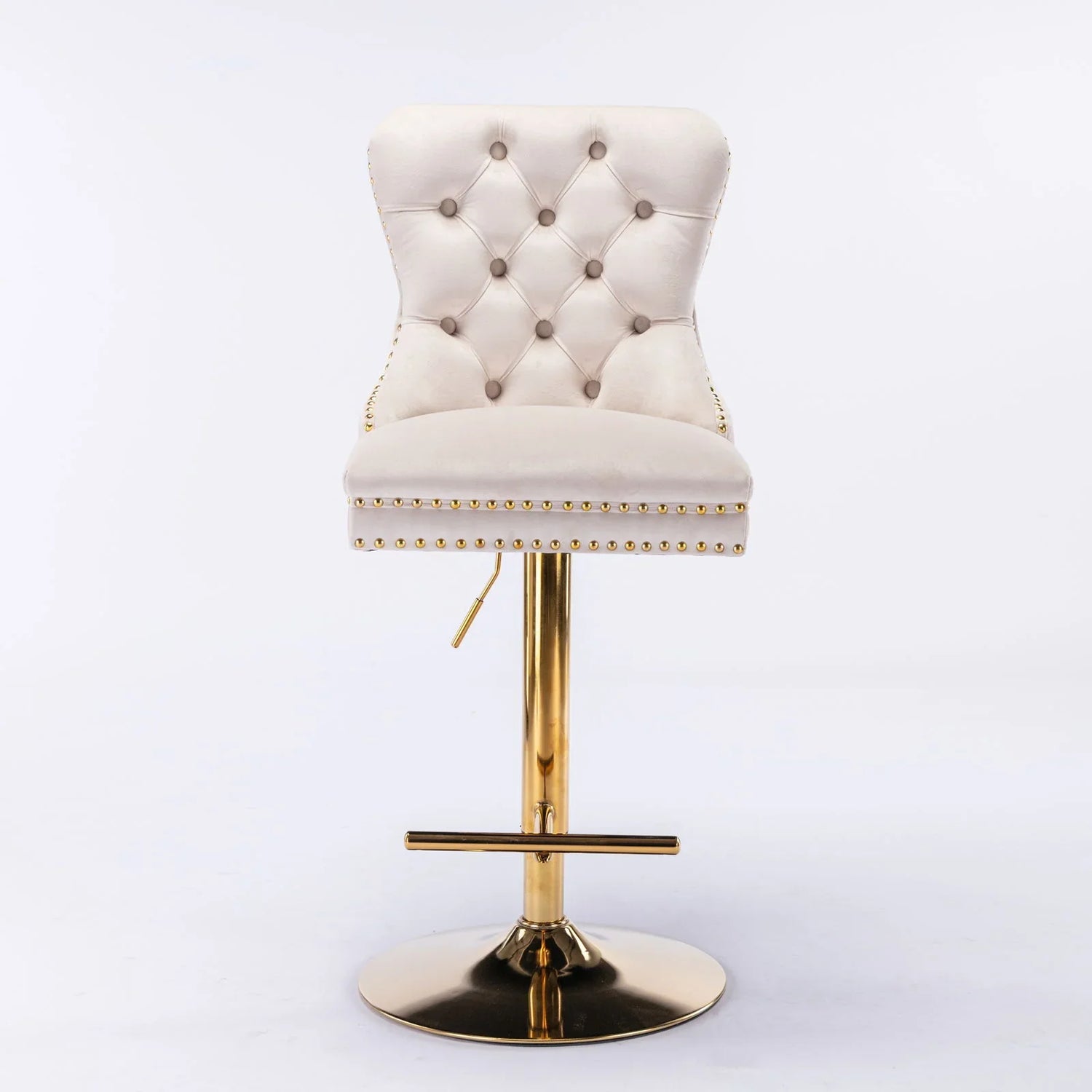 Thick Golden Swivel Velvet Barstools Adjusatble Seat Height From 25-33", Modern Upholstered Bar Stools With Backs Comfortable Tufted For Home Pub And Kitchen Island (Set of 2)