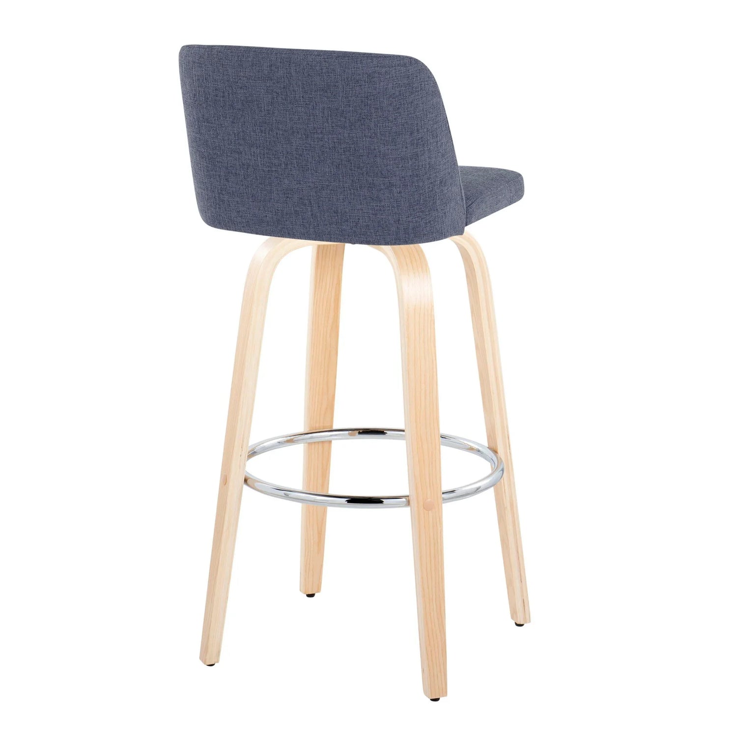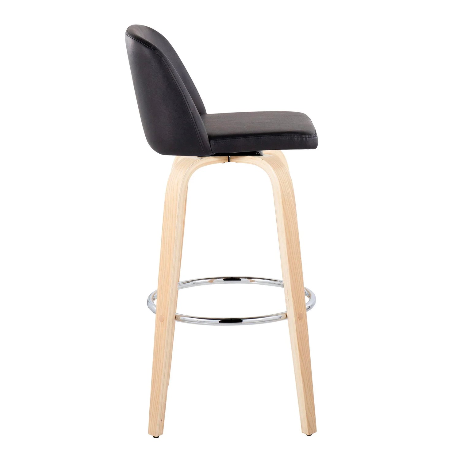 Built around bent-wood legs and a low-profile round footrest, Toriano balances lightweight visual lines with stable seating. The seat is upholstered for comfort (faux leather and performance fabric are used across the Toriano collection) and filled for everyday support; a fixed-height frame with a full 360° swivel gives a familiar barstool feel without complicated hardware. Natural wood tones on the legs and a chrome-finish circular footrest add a modern contrast that reads polished in both casual and refined rooms.