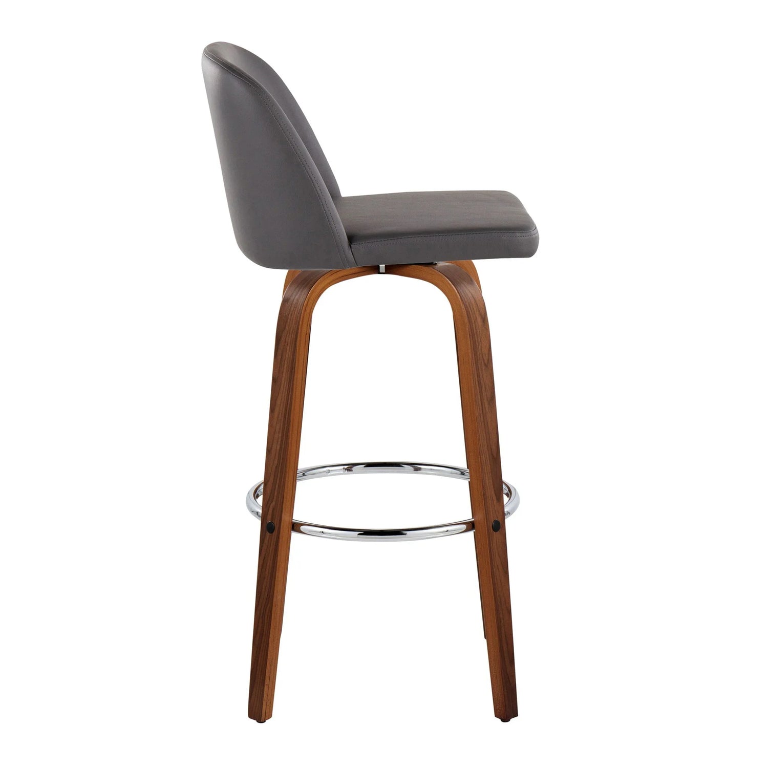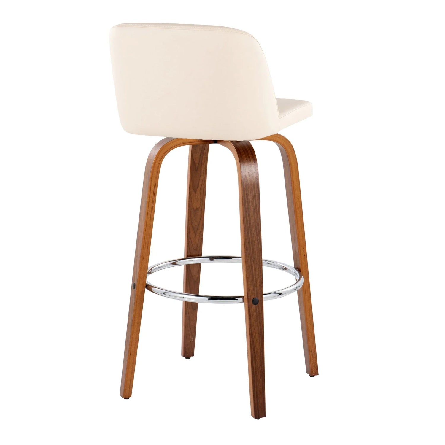 Base & frame: Bentwood legs with a warm walnut‑tone finish and a polished chrome circular footrest.