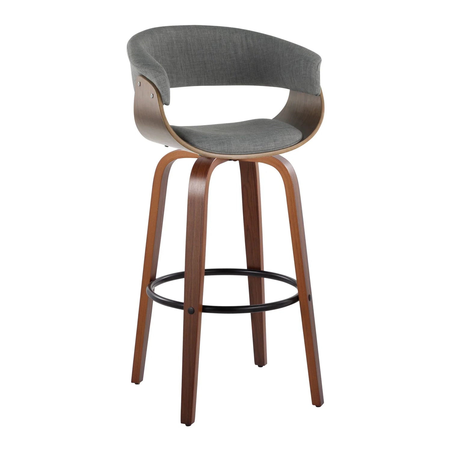 Vintage Mod - Mid-Century Modern Fixed Height Barstool With Swivel & Round Footrest (Set of 2) - Walnut / Light Gray