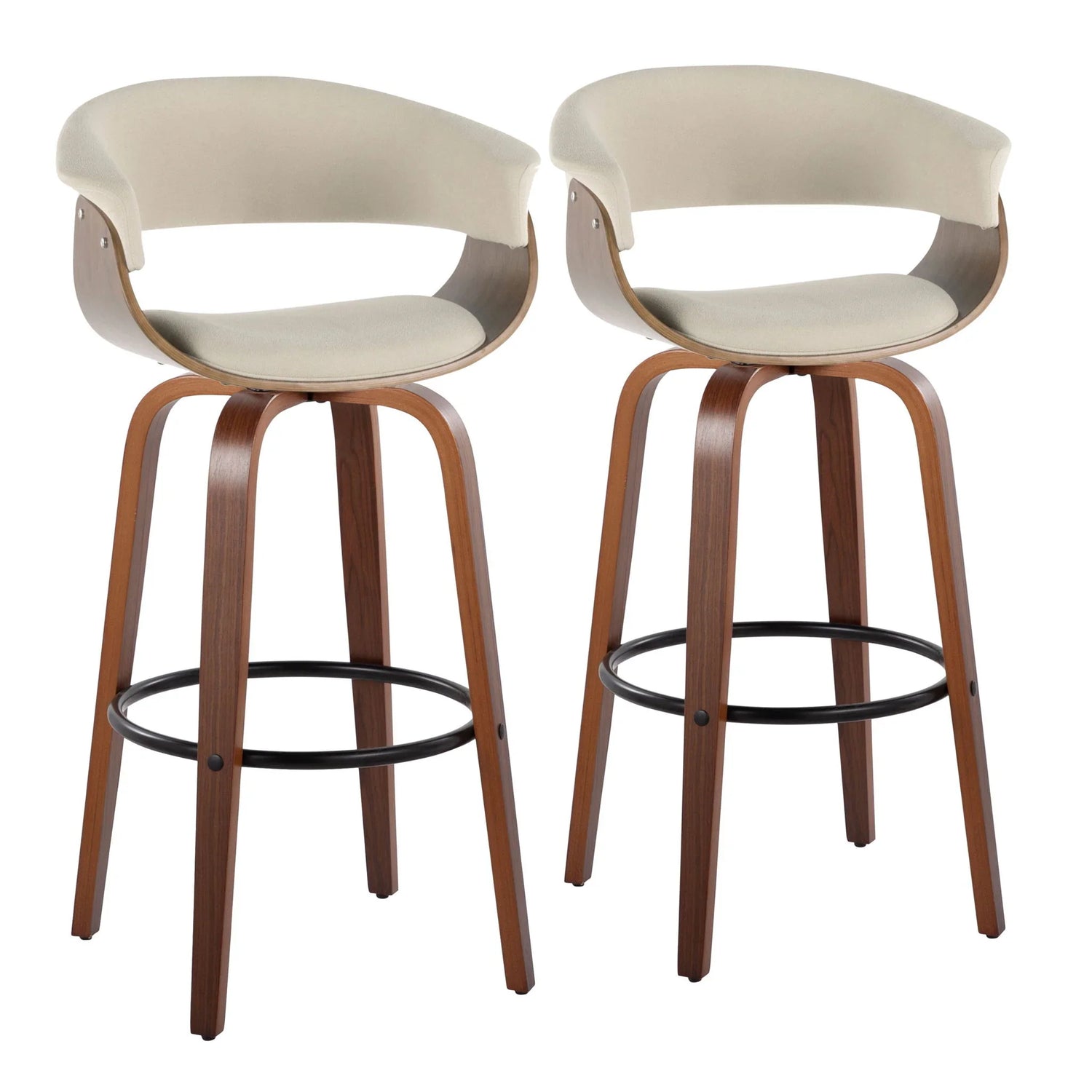 Vintage Mod - Mid-Century Modern Fixed Height Barstool With Swivel & Round Footrest (Set of 2) - Walnut / Cream