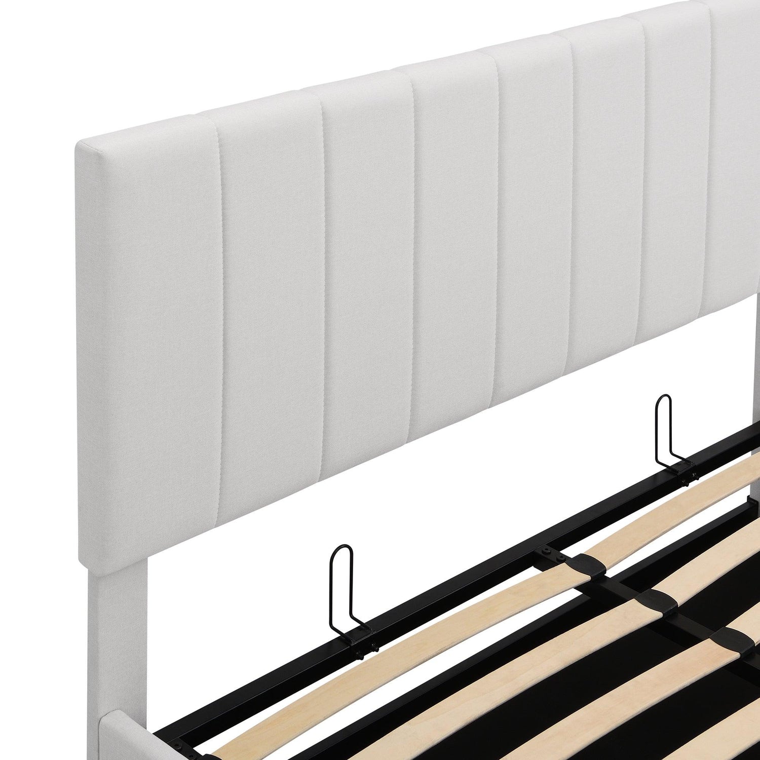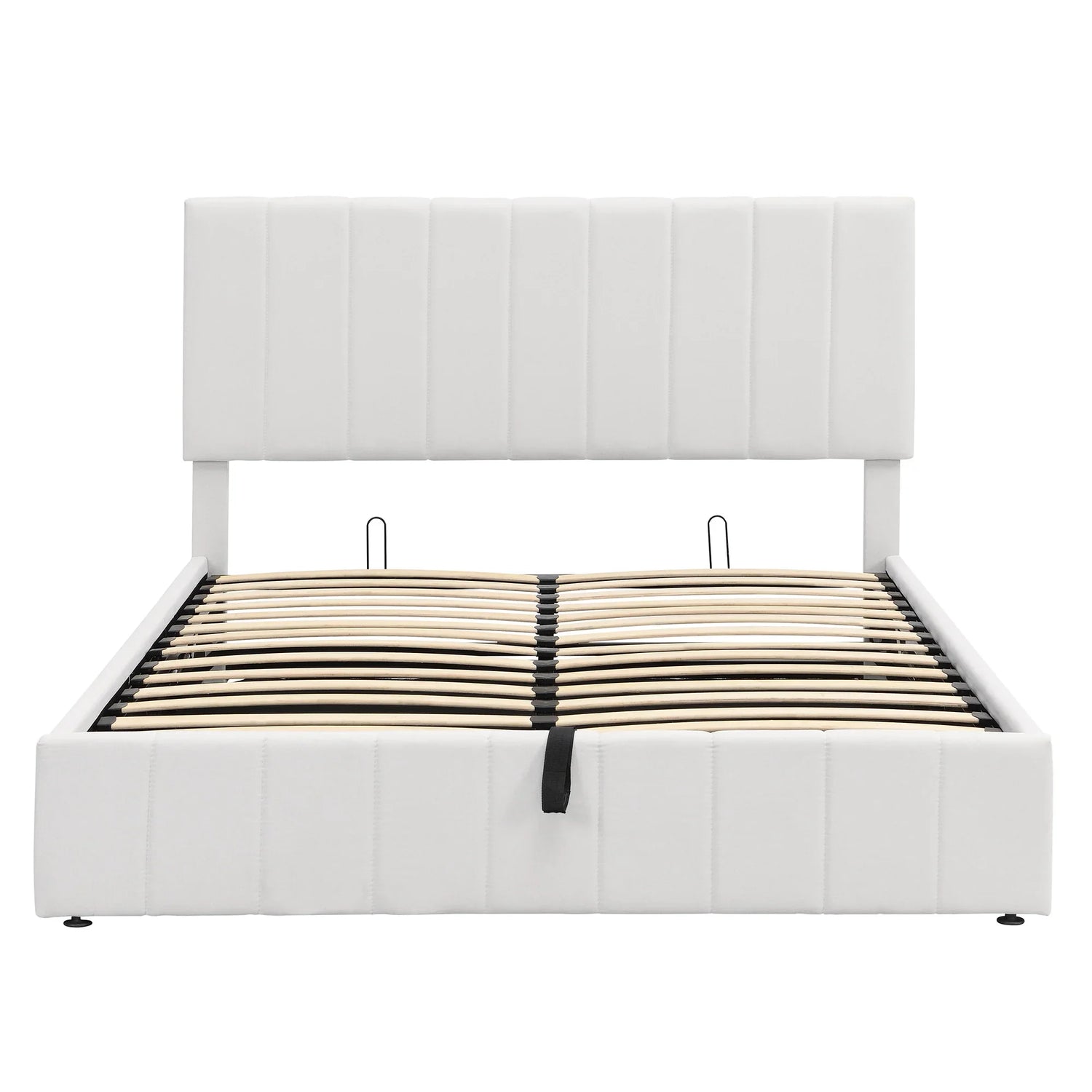 Storage Bed With Hydraulic Lift Platform, Upholstered White