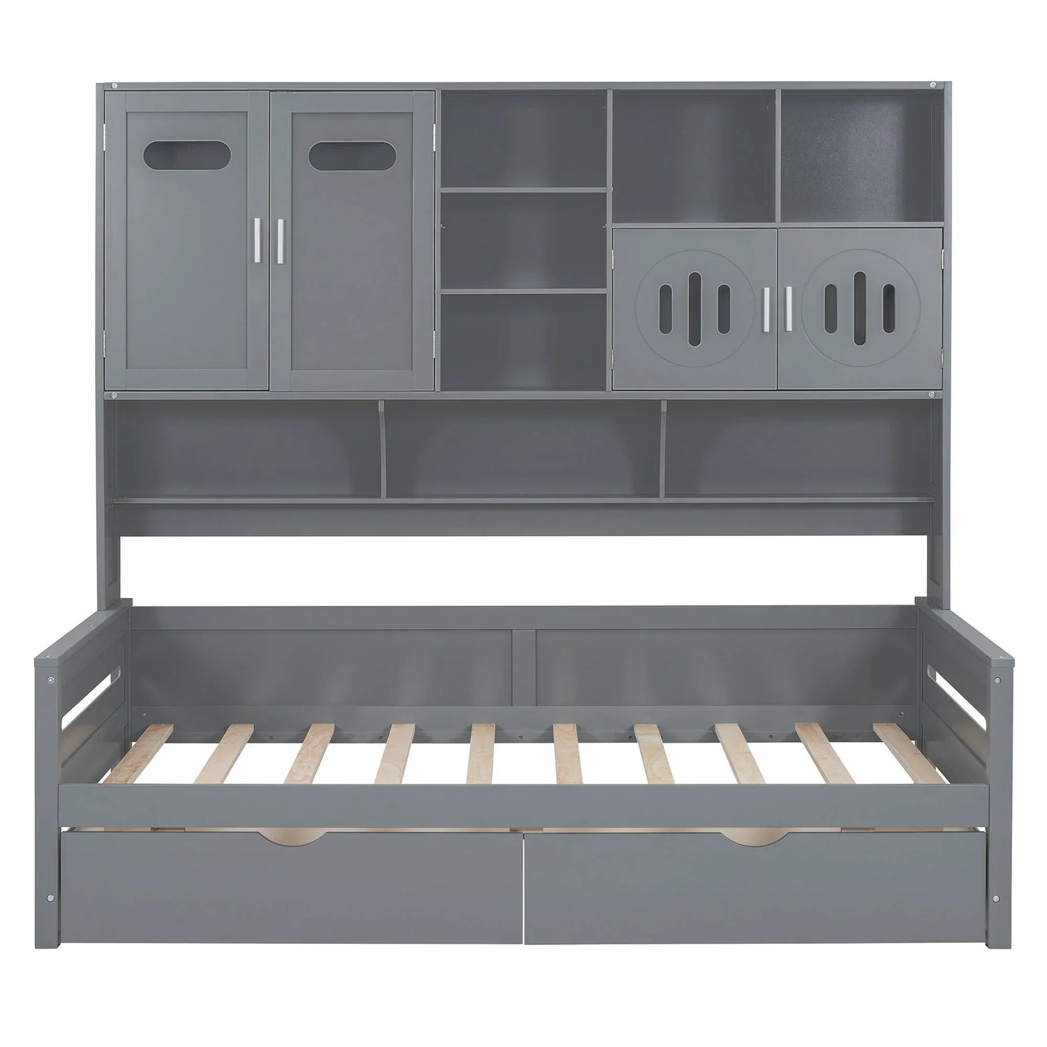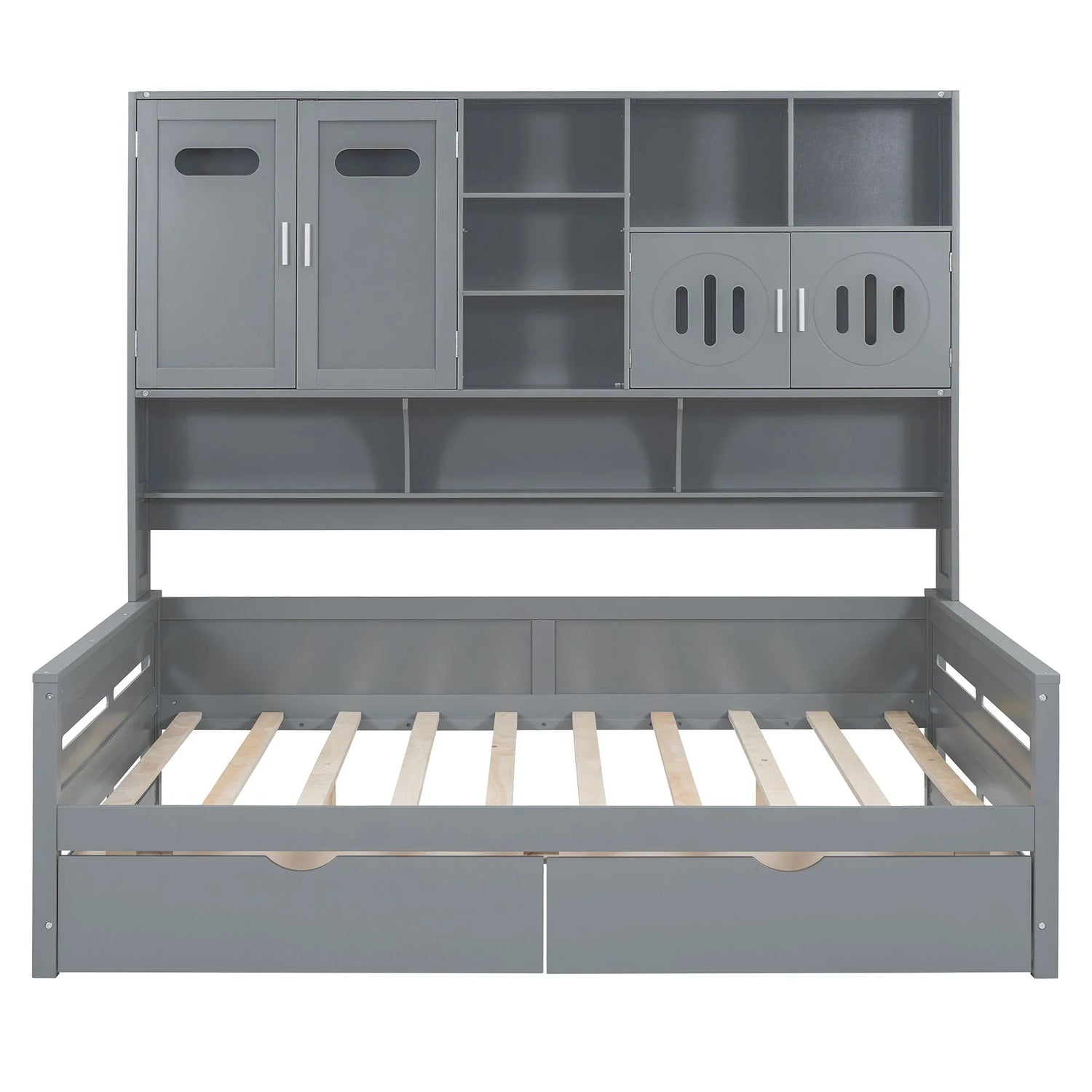 Full Size Daybed With 2 Drawers And All In One Cabinet And Shelf - Gray