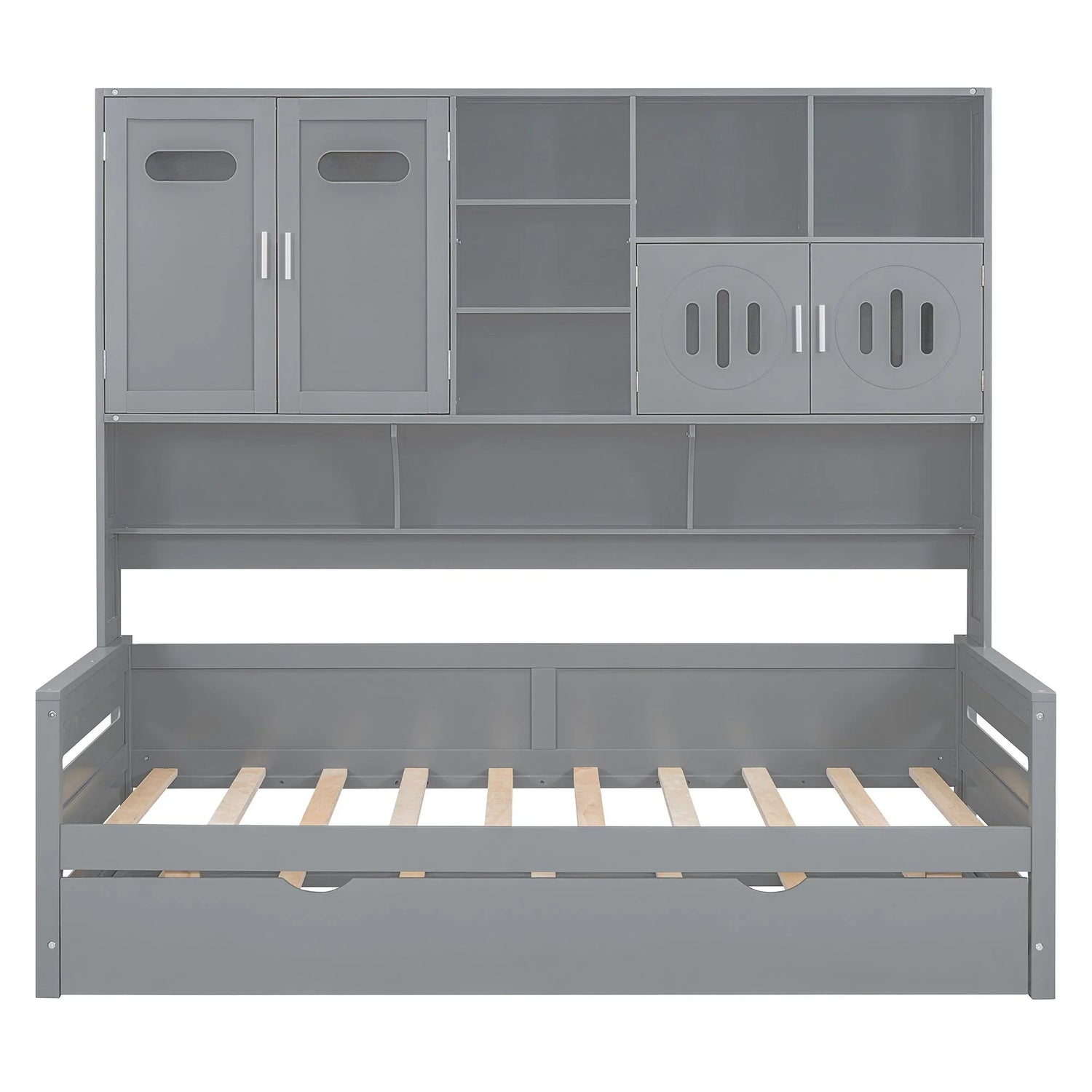 Twin Size Daybed With Twin Size Trundle, And All In One Cabinet And Shelf - Gray