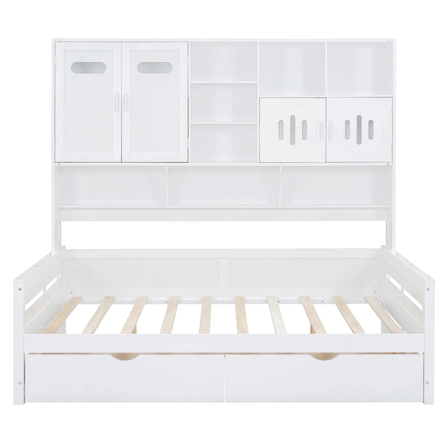Full Size Daybed With 2 Drawers And All In One Cabinet And Shelf - White