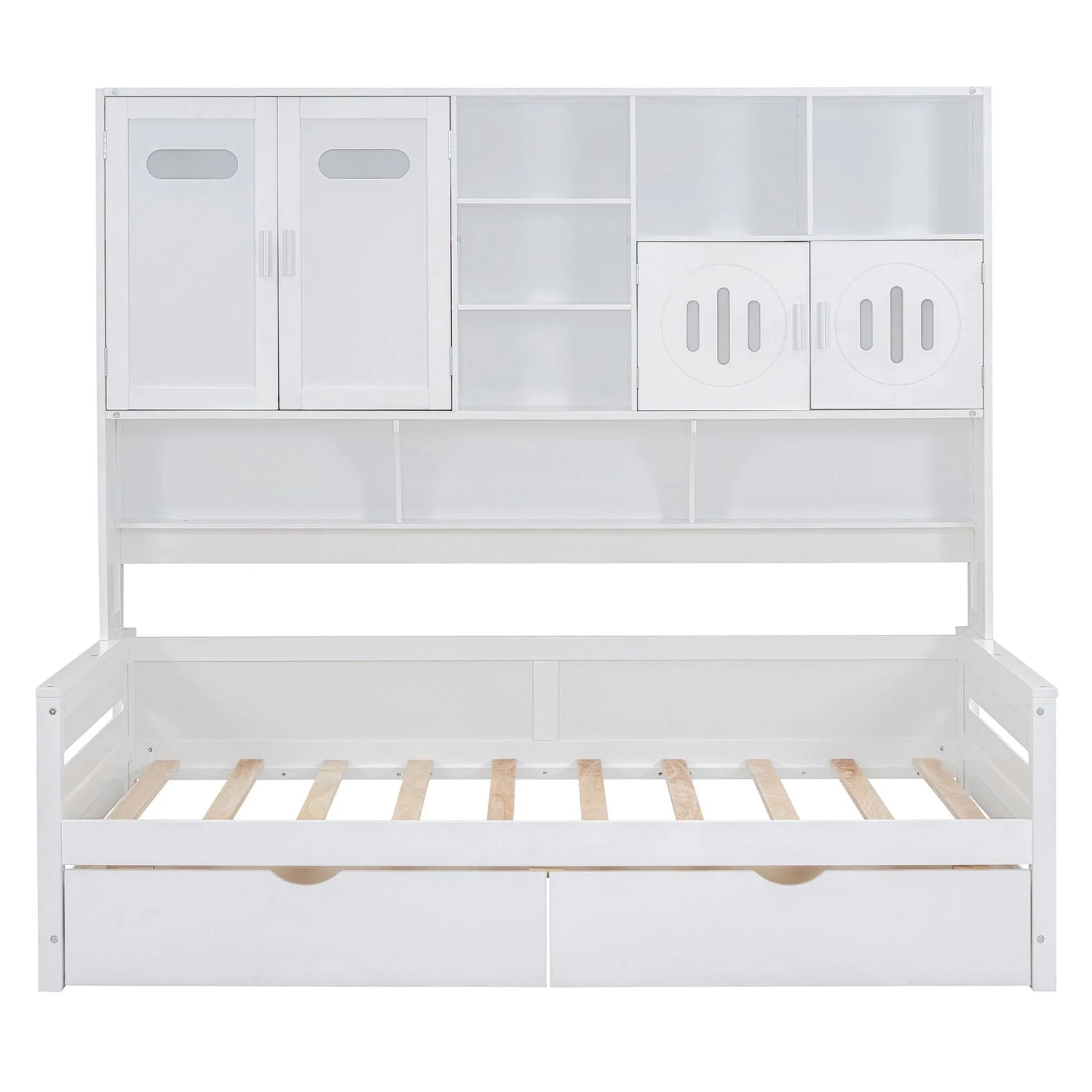 Twin Size Daybed With 2 Drawers And All In One Cabinet And Shelf - White