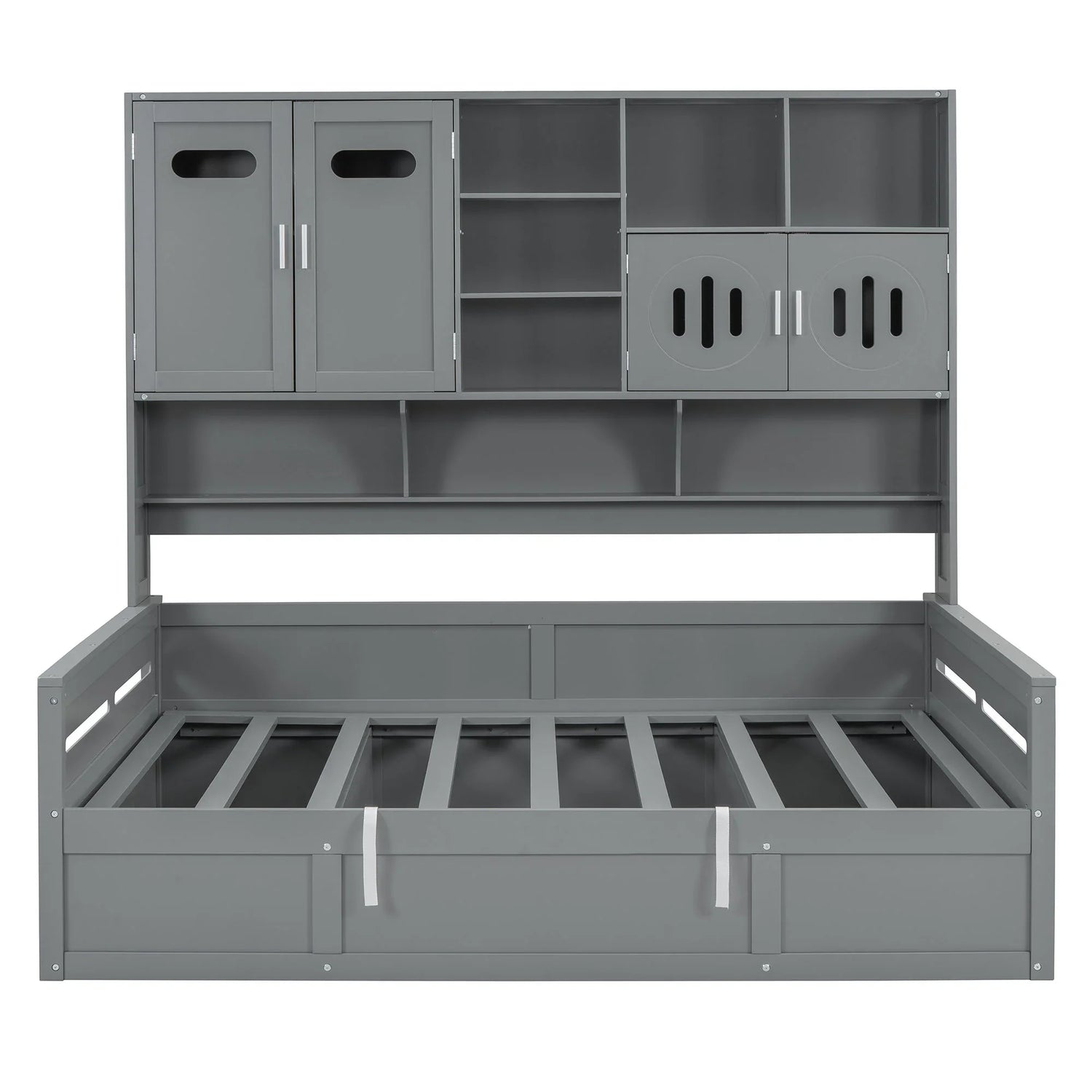 Full Size Wooden Daybed With Hydraulic Bed And All In One Cabinet And Shelf - Gray