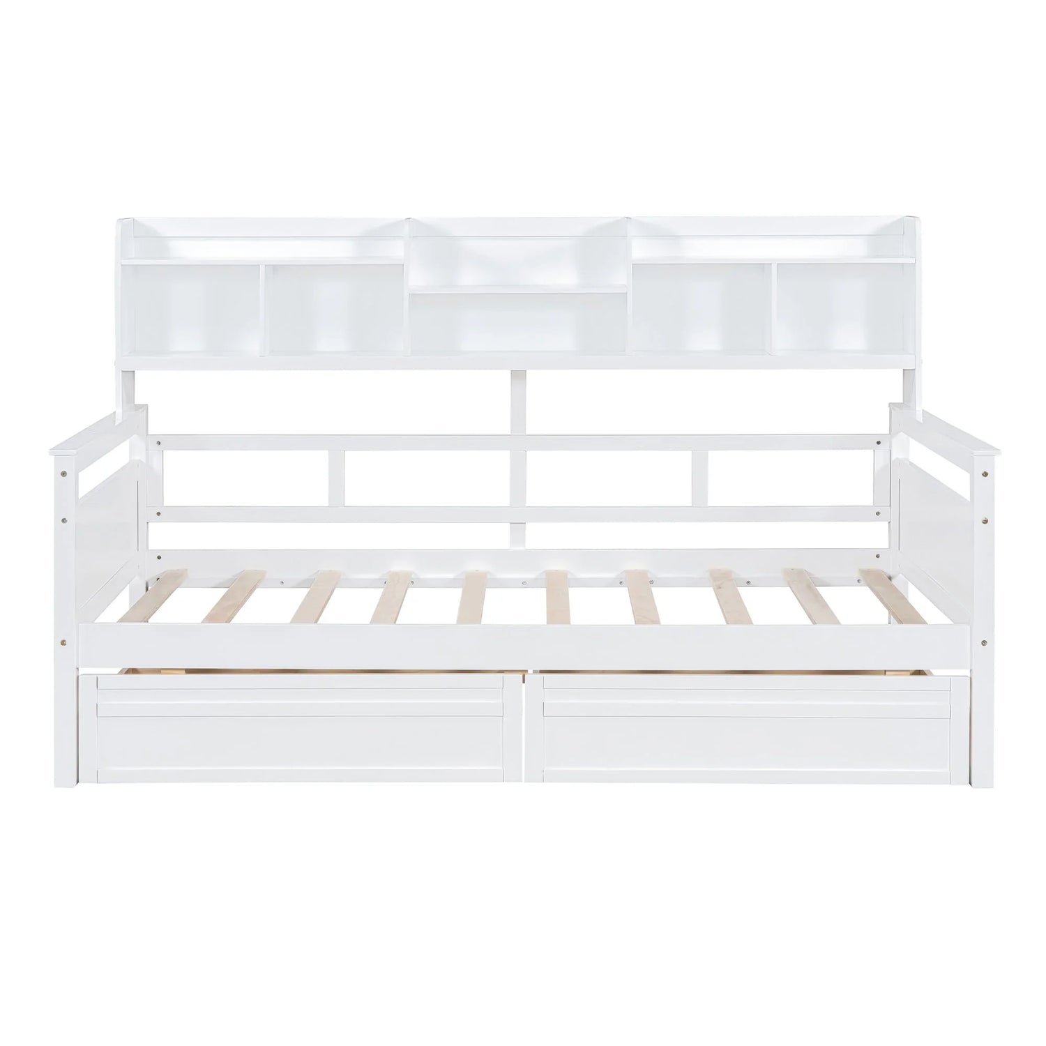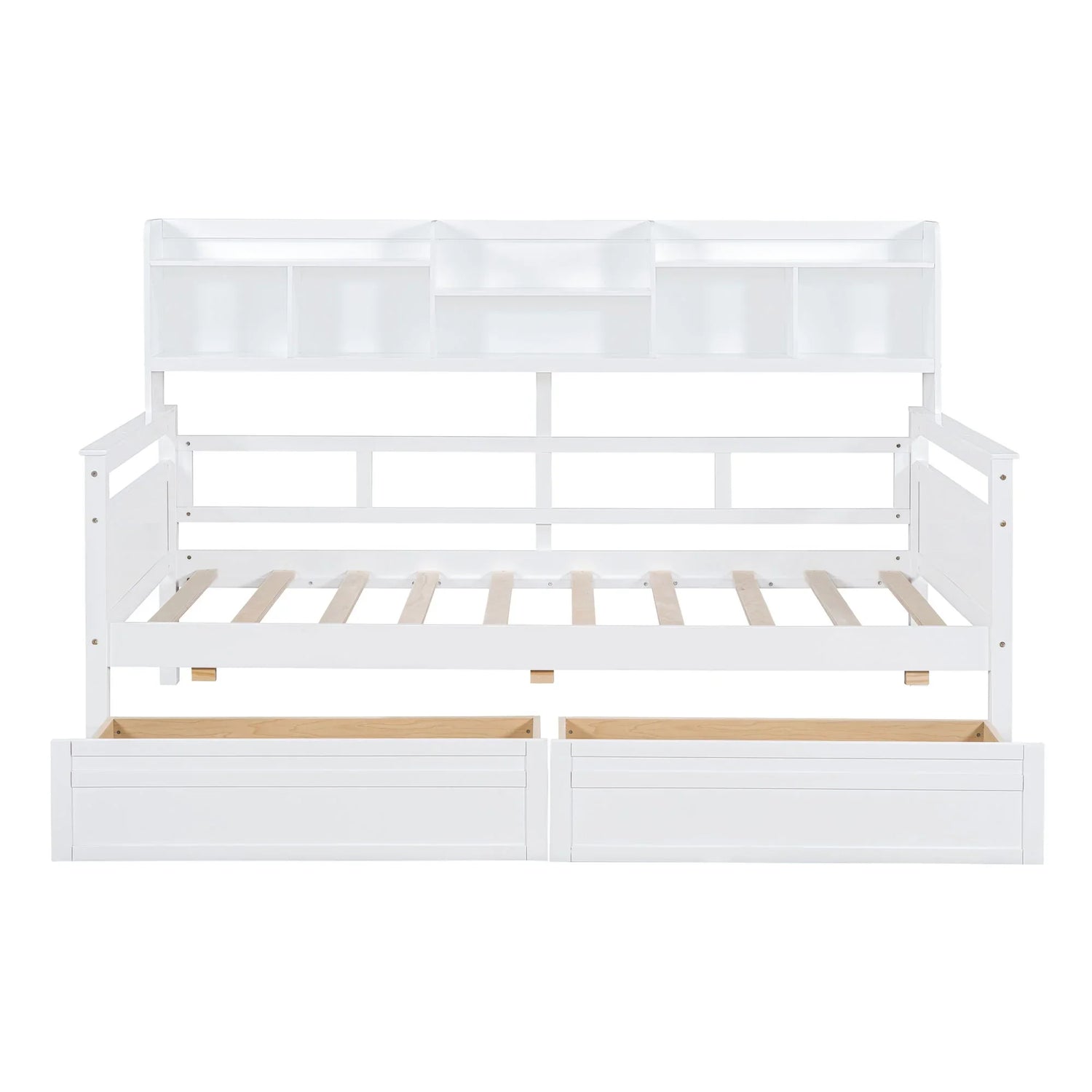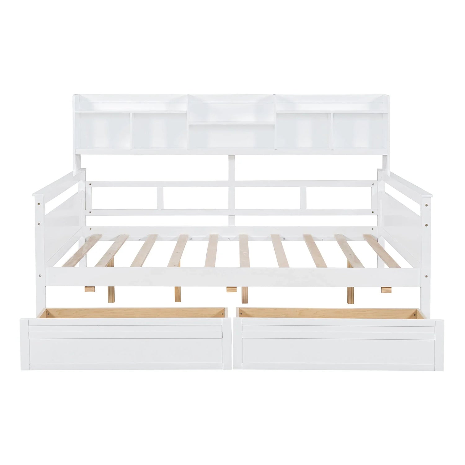 Daybed, Wood Slat Support, With Bedside Shelves And Two Drawers