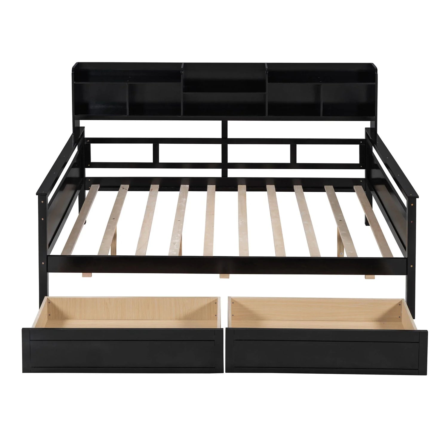 Full Size Daybed, Slat Support, With Bedside Shelf And Two Drawers - Espresso