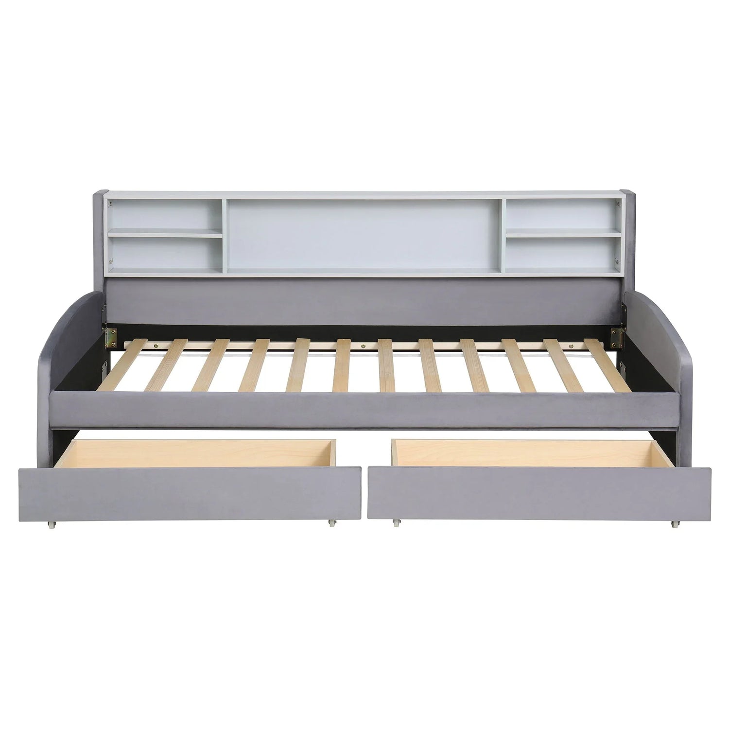 Twin Size Upholstered Platform Bed With Storage Drawers And Headboard - Gray