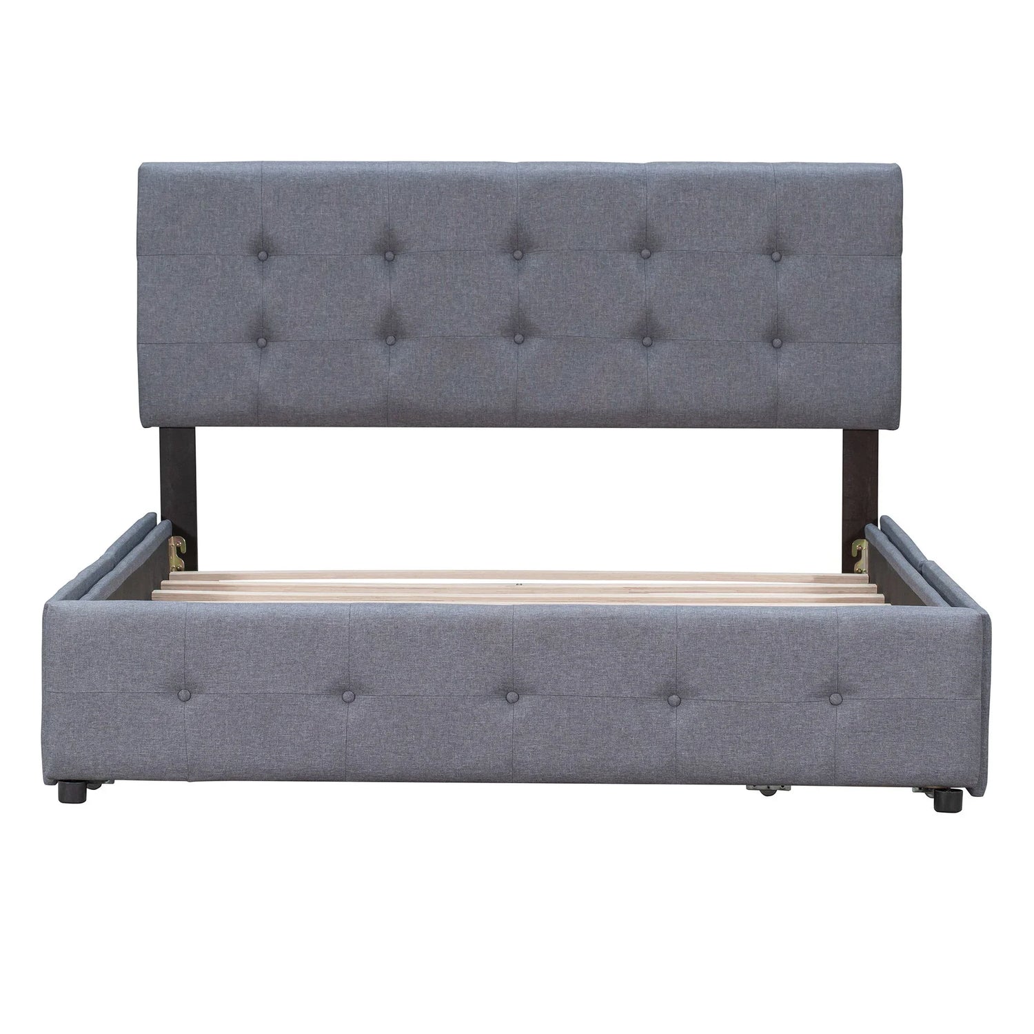 Queen Size Upholstered Platform Bed With 2 Drawers And 1 Twin Long Trundle - Dark Gray