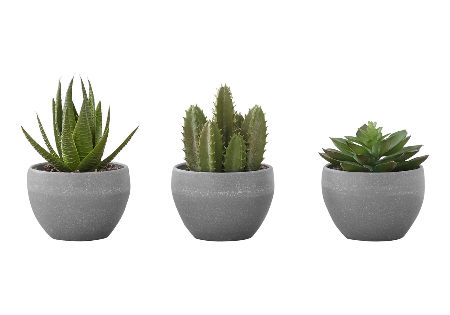 6" Tall, Artificial Plant, Succulent, Indoor, Faux, Fake, Table, Greenery, Potted, Decorative (Set of 3) - Green / Gray