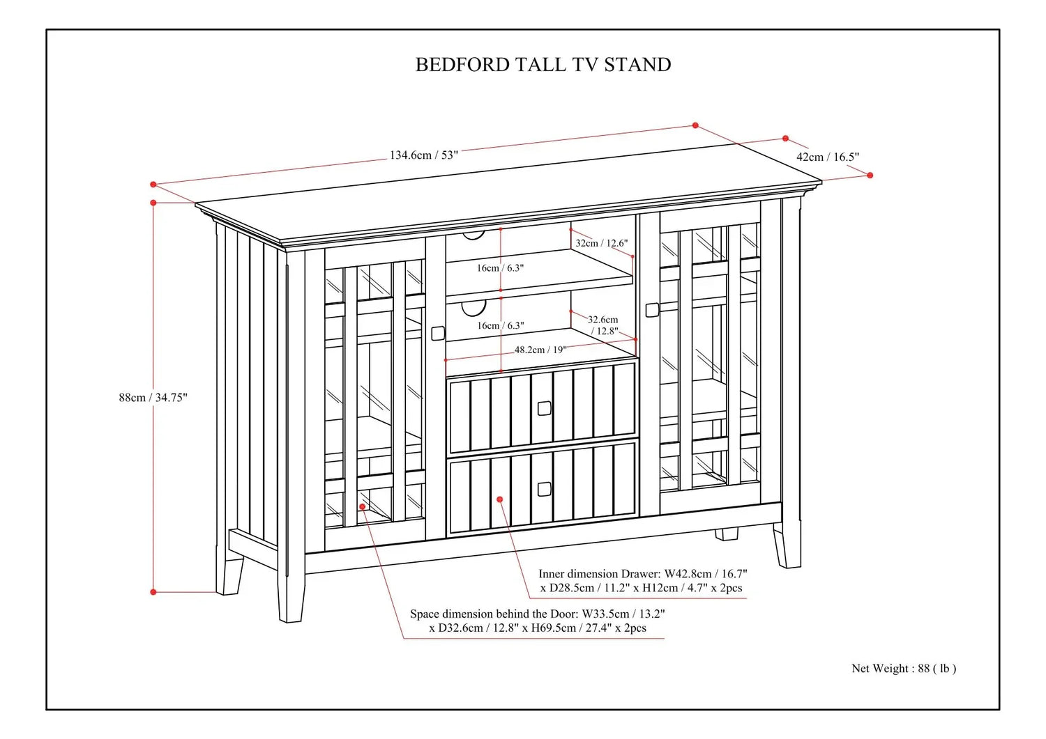 Bedford - Tall TV Media Stand - Dark Tobacco Brown