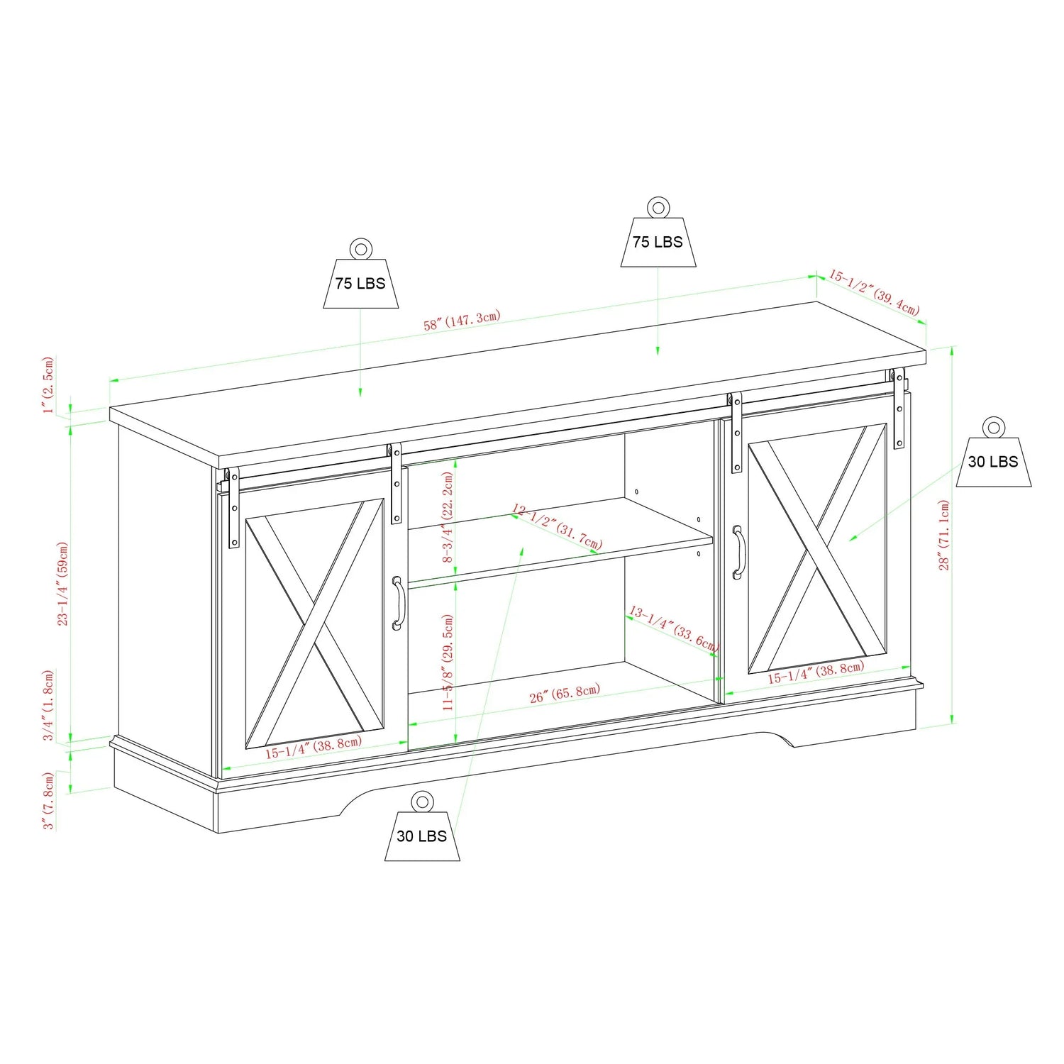 Farmhouse Sliding X Barn Door 58" TV Stand For 65" TVs - Gray Wash