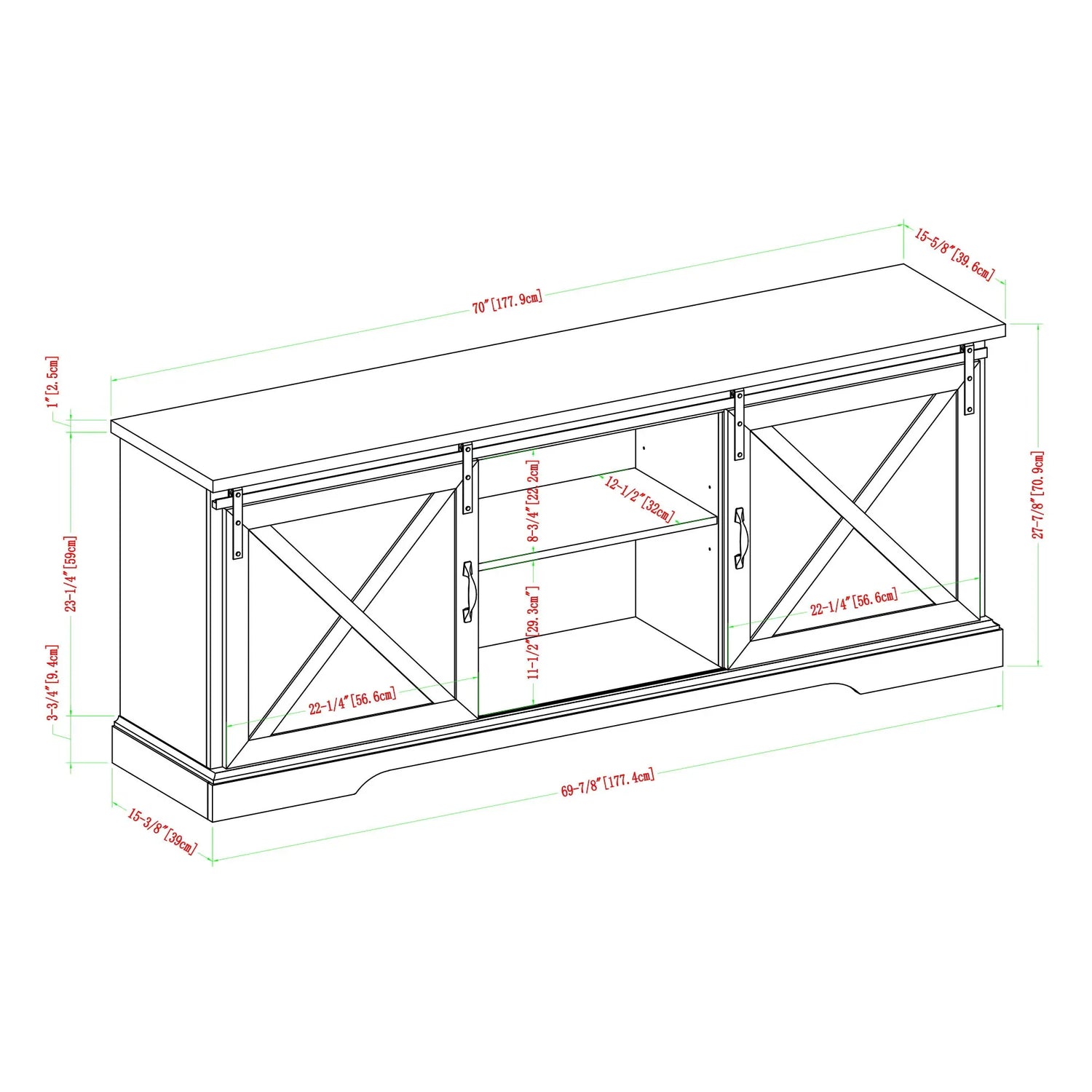 Farmhouse Sliding X Barn Door 70" TV Stand For 80" TVs - Gray Wash