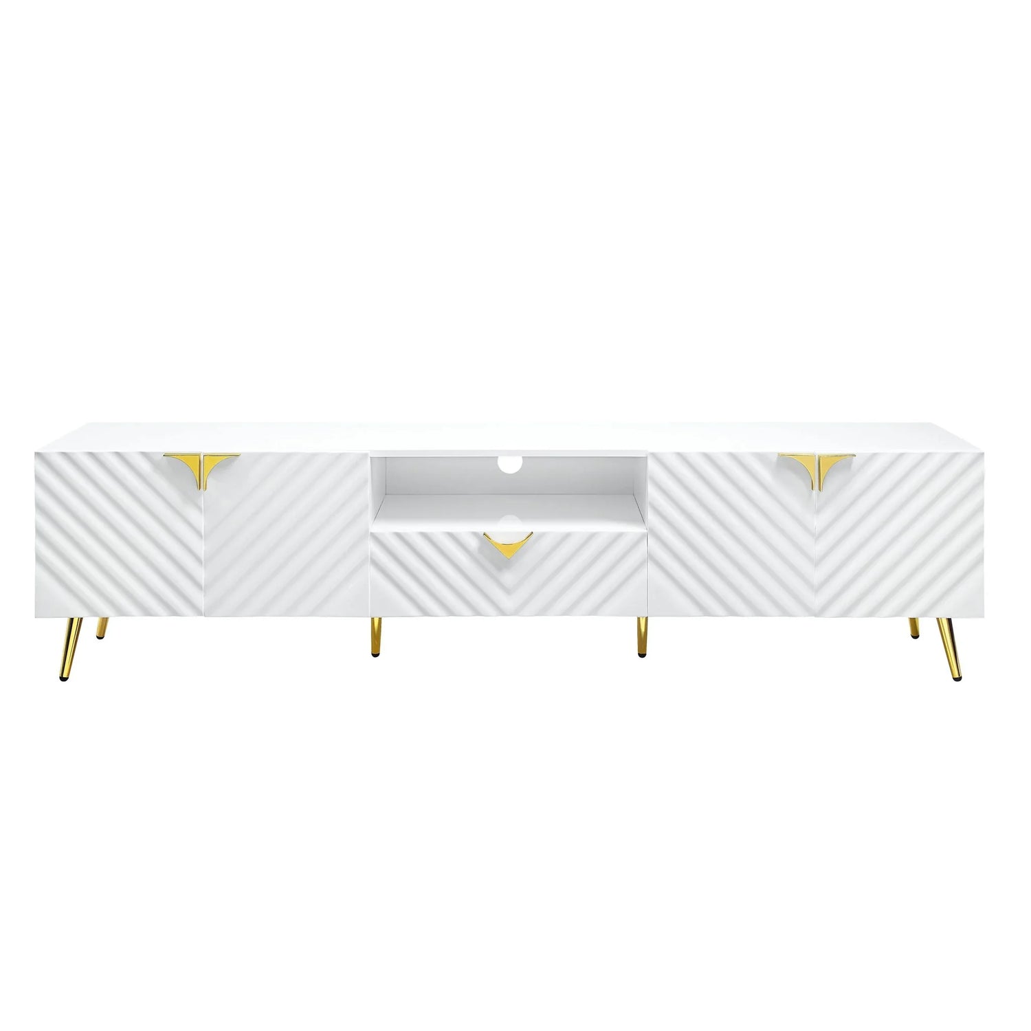 - Modern Design: The Gaines White TV Stand features a fully KD structure with a high gloss finish and a unique wave pattern design, providing a stylish and contemporary look for your living space.