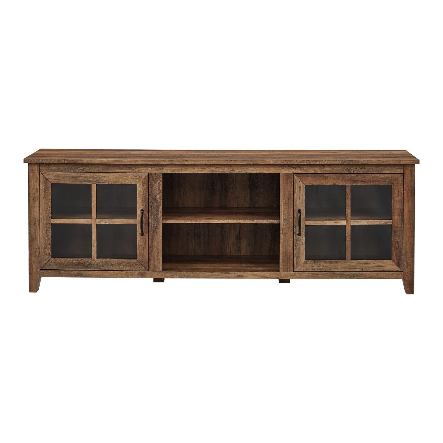 Modern Farmhouse 2 Door Glass Windowpane 70" TV Stand For 80" TVs - Rustic Oak