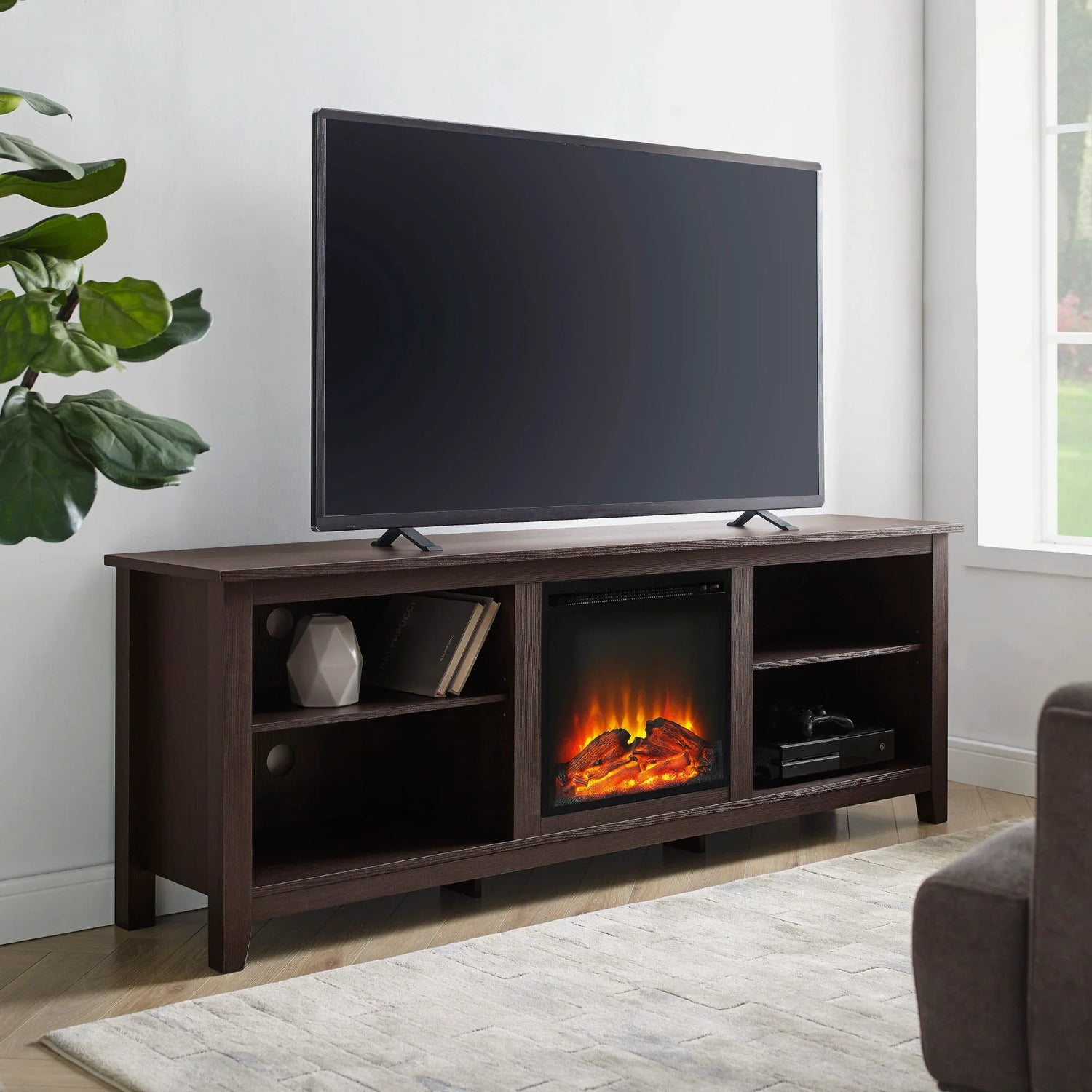 Modern Transitional Wood 70" Fireplace TV Stand For 80" TVs With 2 Shelves - Espresso