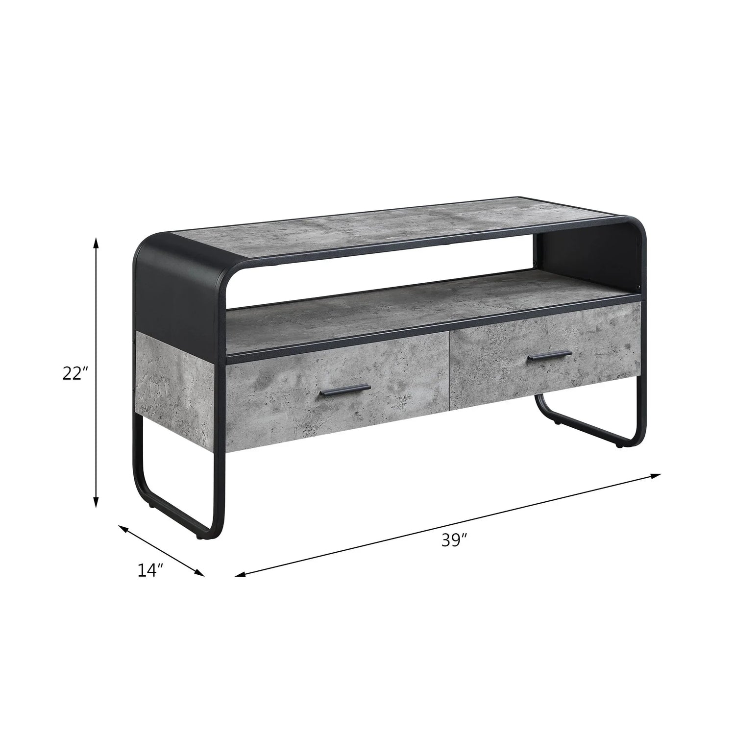 • Storage Options: Includes one open compartment and storage drawers, offering ample space for organizing media accessories.