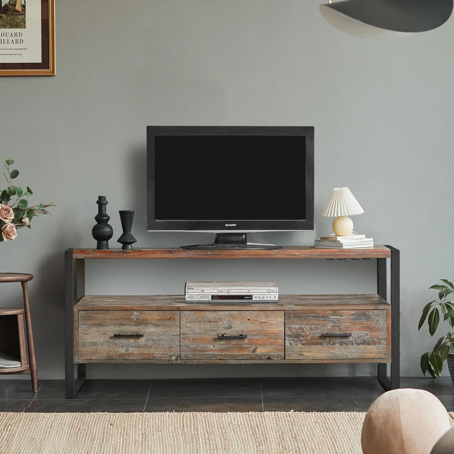 Reclaimed Wood Media TV Console Table With 3 Drarwer, Open Shelf - Antique Gray