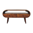 - Circular TV Stand - Our solid timber media unit is expertly constructed from 100% solid mango wood in a lovely finish. This modern circular design offers clean, curved edges and features 2 drawers that come with a shiny knob, and a large open slot to place any books, photo frames, ornaments, as well as 4 Nordic style legs.
