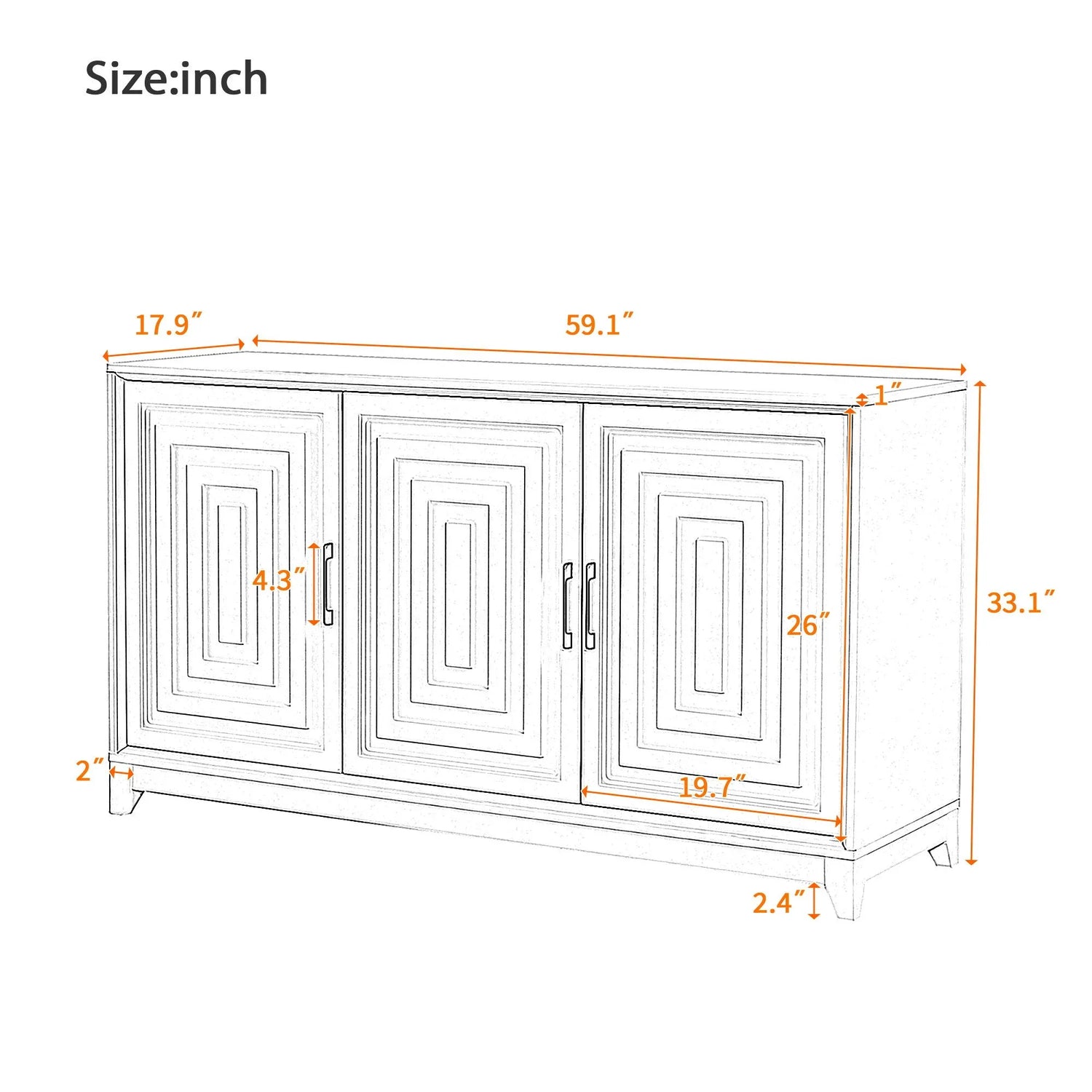 - Materials: Solid wood legs; metal handles; engineered surfaces with a pure‑color finish and geometric door detailing.