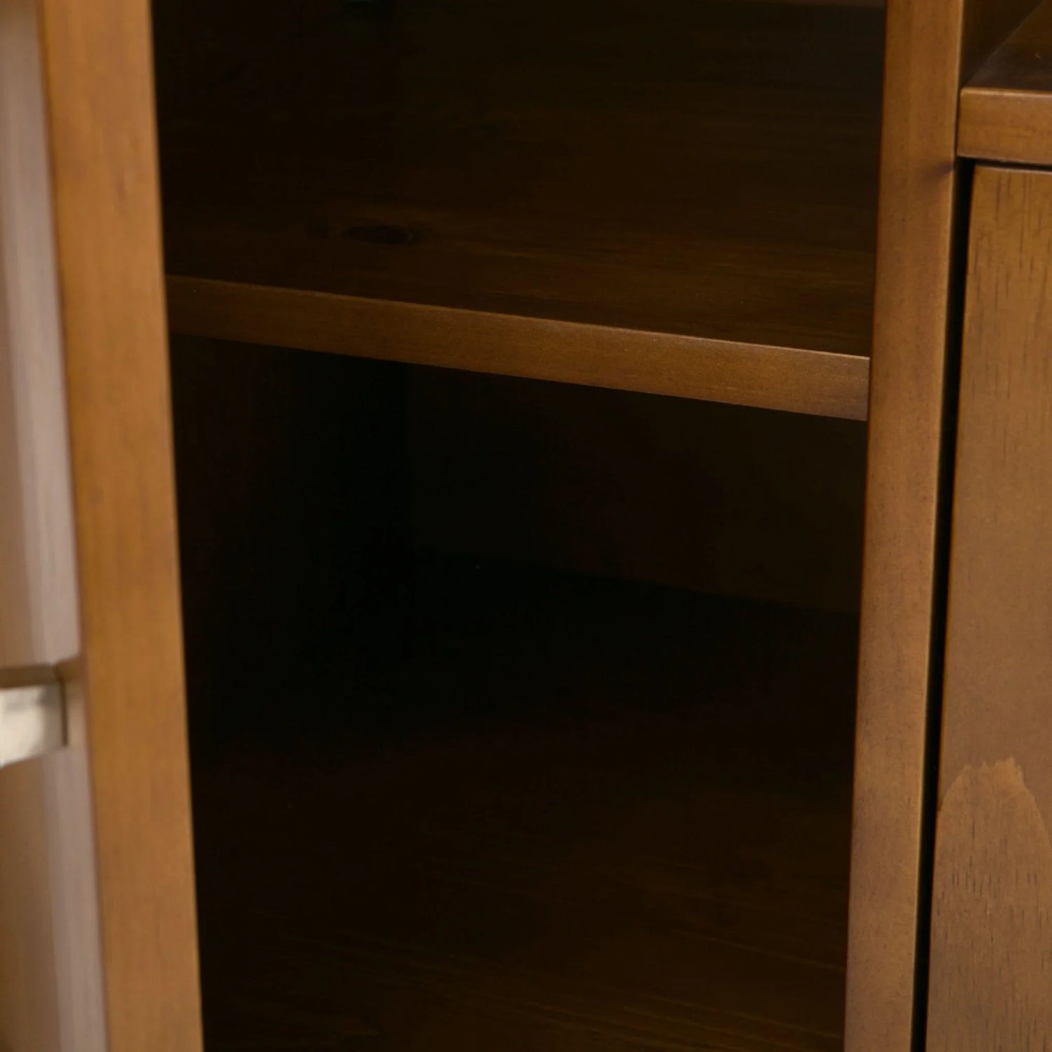 • Adjustable shelving in side cabinets—customize vertical space for boxes, games, or oversized media items.