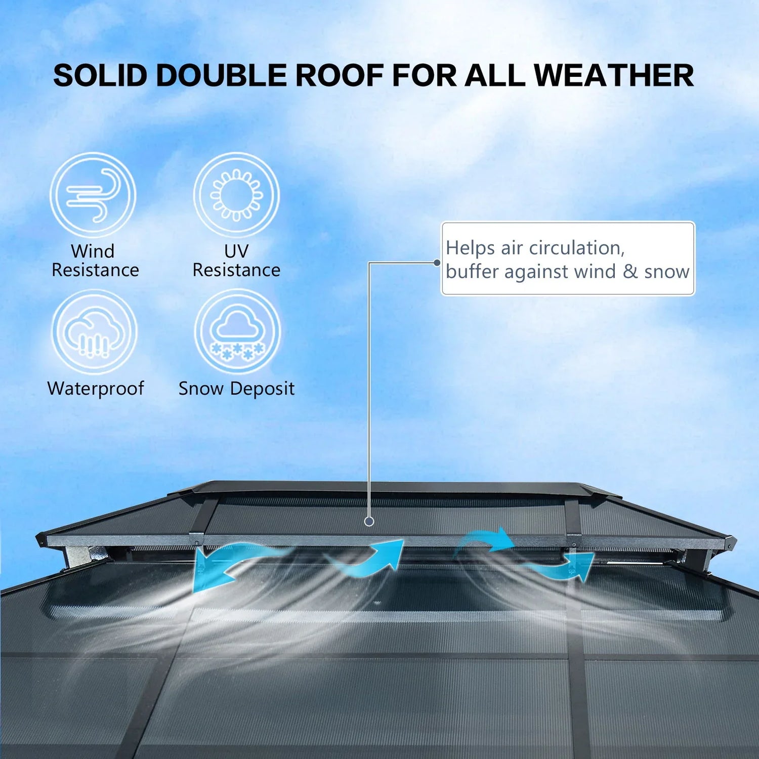 - Elegant Appearance: Smooth inclined roof design gives the gazebo a chic and elegant look, enhancing your outdoor space.