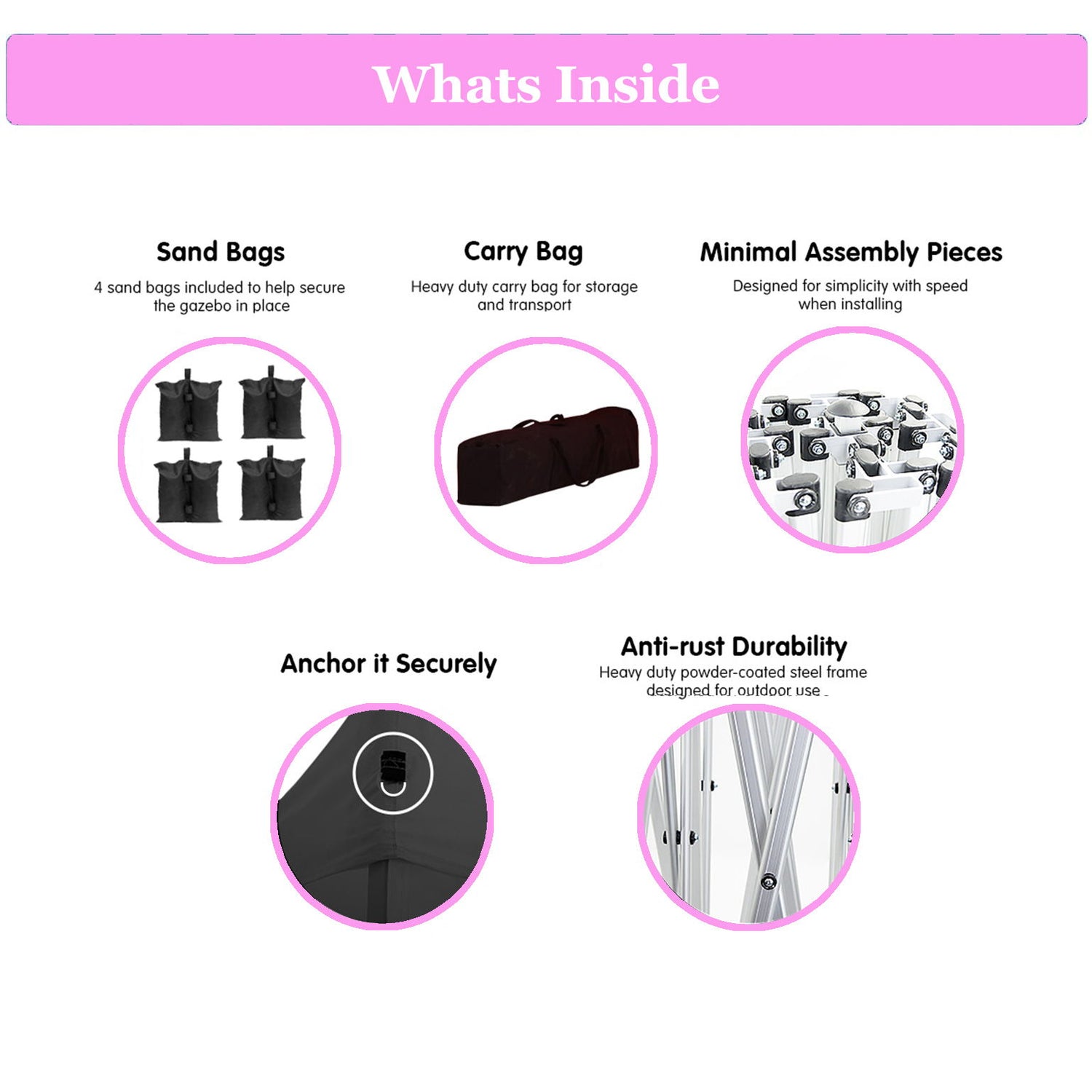 10'X20' Ez Pop Up Canopy Outdoor Portable Party Folding Tent With 6 Removable Sidewalls + Carry Bag + 4 Pieces Weight Bag - Pink