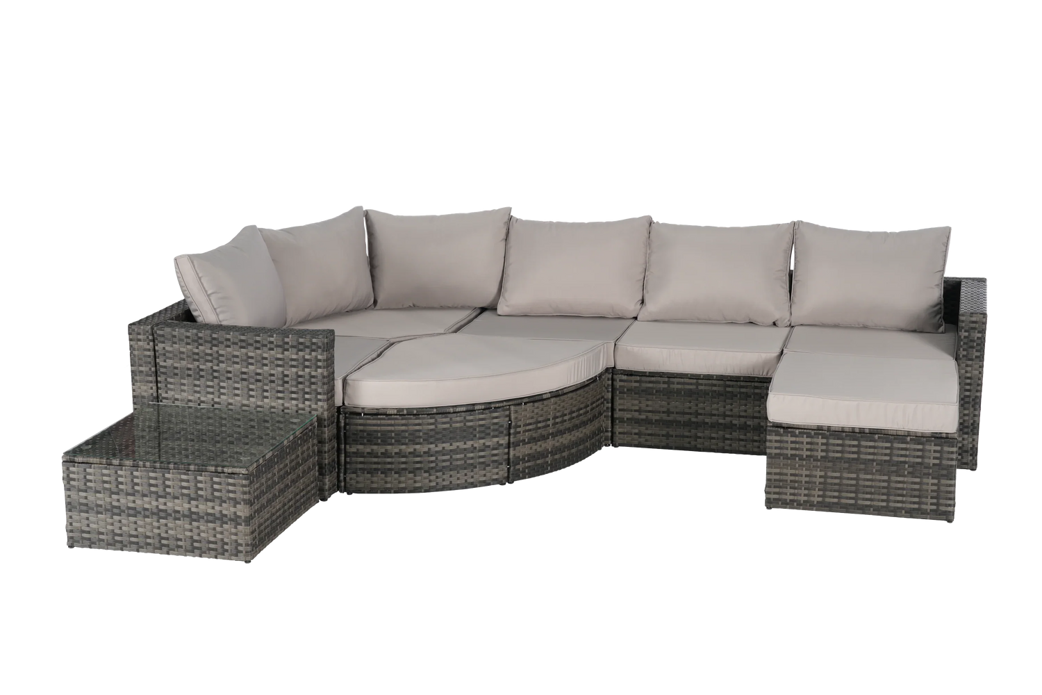 8 Piece Outdoor Wicker Sectional Sofa Set with 1 Curved Sofa & Glass Top Table Description