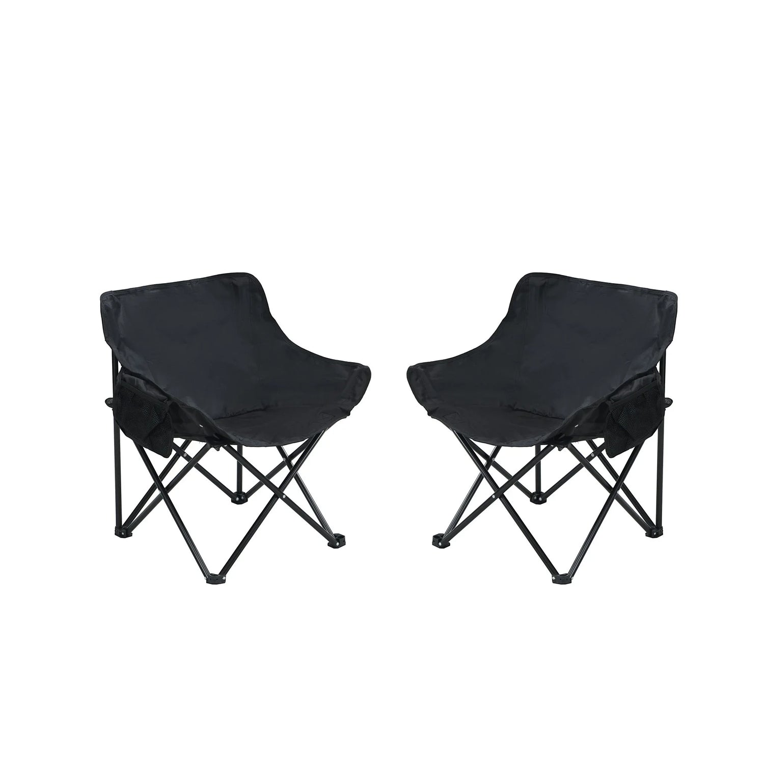 A practical set for campers, tailgaters and any outdoor host who needs portable, comfortable seating that sets up in seconds. This two‑piece folding chair set pairs a low-slung, lounge-style seat with light cushioning and an open, umbrella‑style frame—ideal for relaxed evenings around a firepit, weekend fishing trips, or extra seating on the patio.