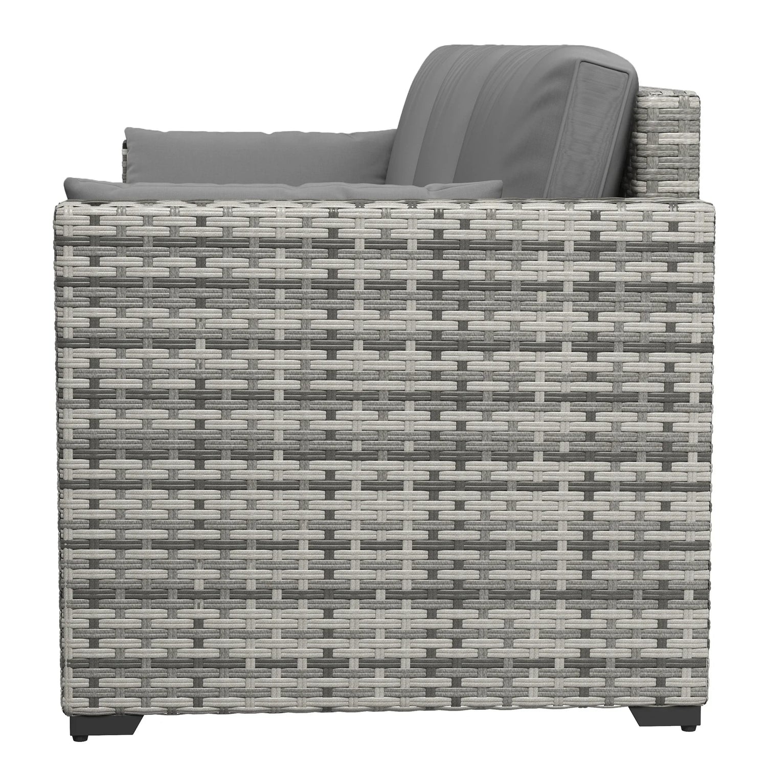 • Finish & color: Multi-tone gray woven frame with solid mid-gray cushions. Natural variations in weave and fabric tone are normal and may appear different on screen or in different light.