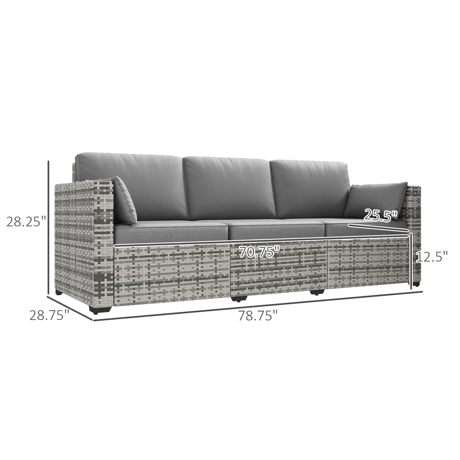 The Wicker Outdoor Sofa in gray is made for people who want the comfort and scale of an indoor couch on a covered patio, sunroom, or deck. Designed as a three-seat outdoor sofa, it pairs deep, cushioned seating with a low-profile, boxy silhouette so families and friends can lounge, chat, or nap in relaxed comfort.