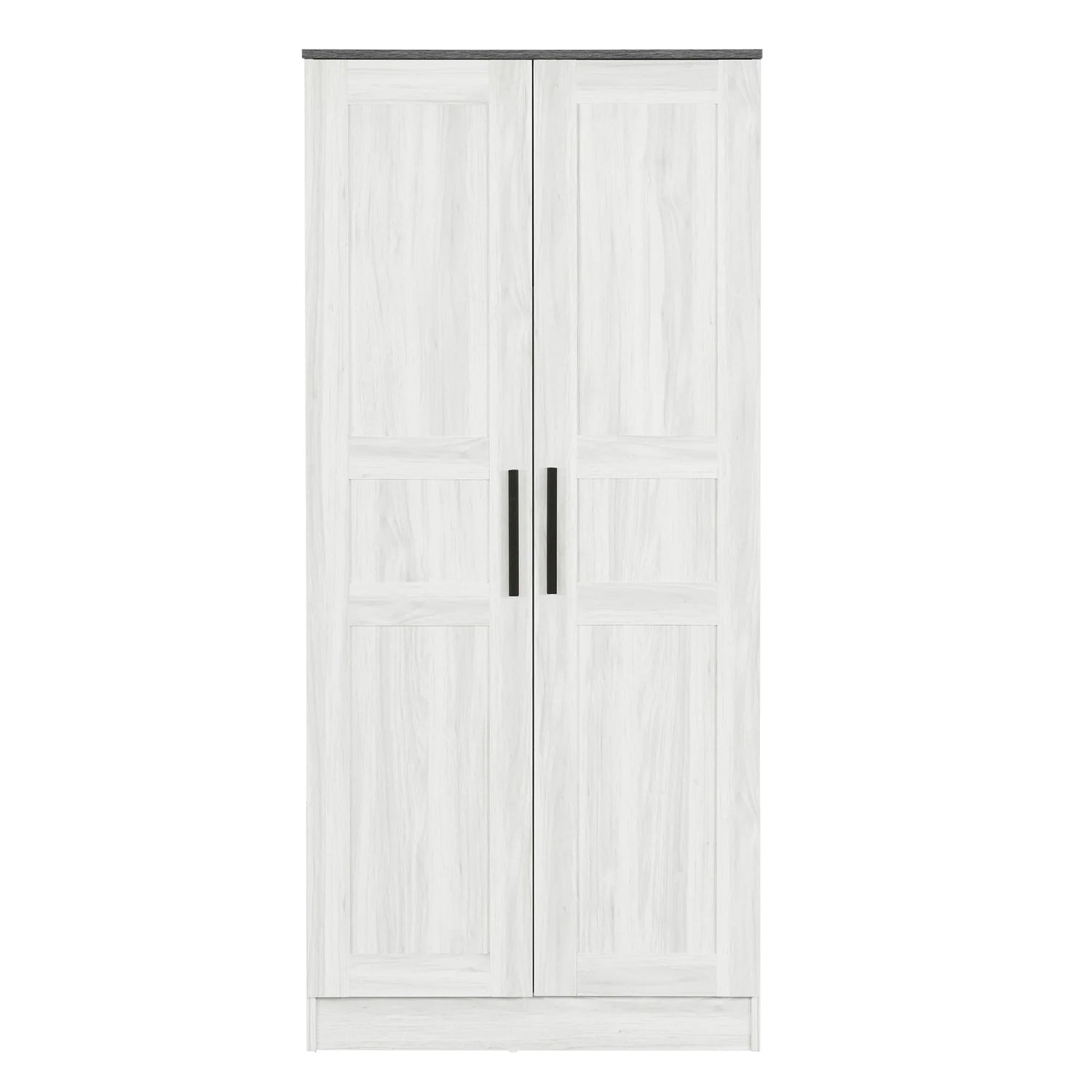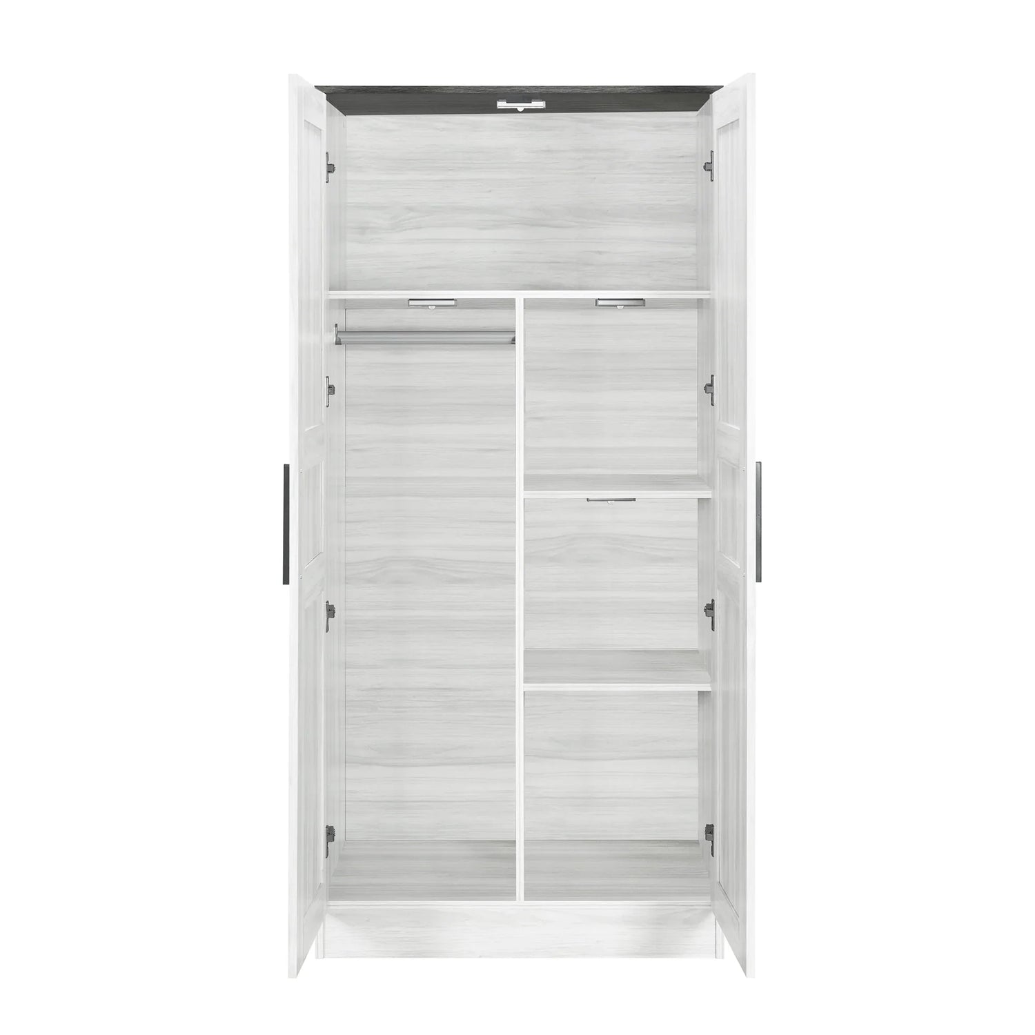 2-Door Wardrobe Armoire with LED and 4 Storage Shelves, Grey