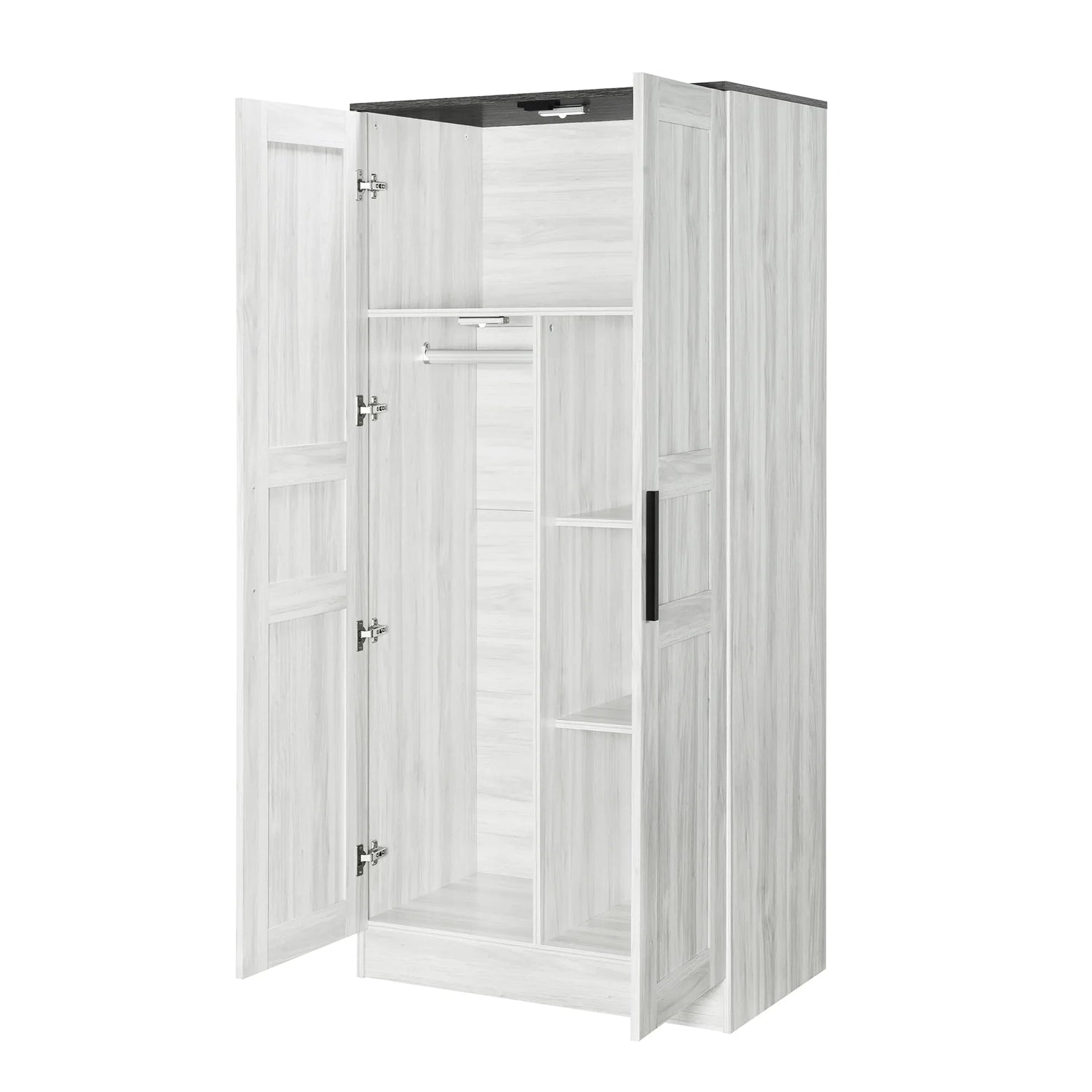 2-Door Wardrobe Armoire with LED and 4 Storage Shelves, Grey is backordered and will ship as soon as it is back in stock.