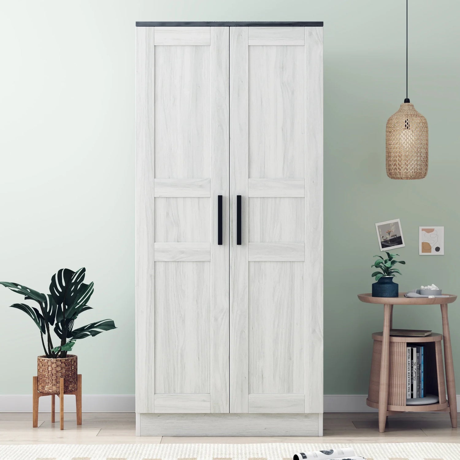 - [Storage Shelves] The wardrobe features 4 storage shelves can store your essentials. Your bedding, clothes or toys can all be properly placed with with two different sized storage shelves.
