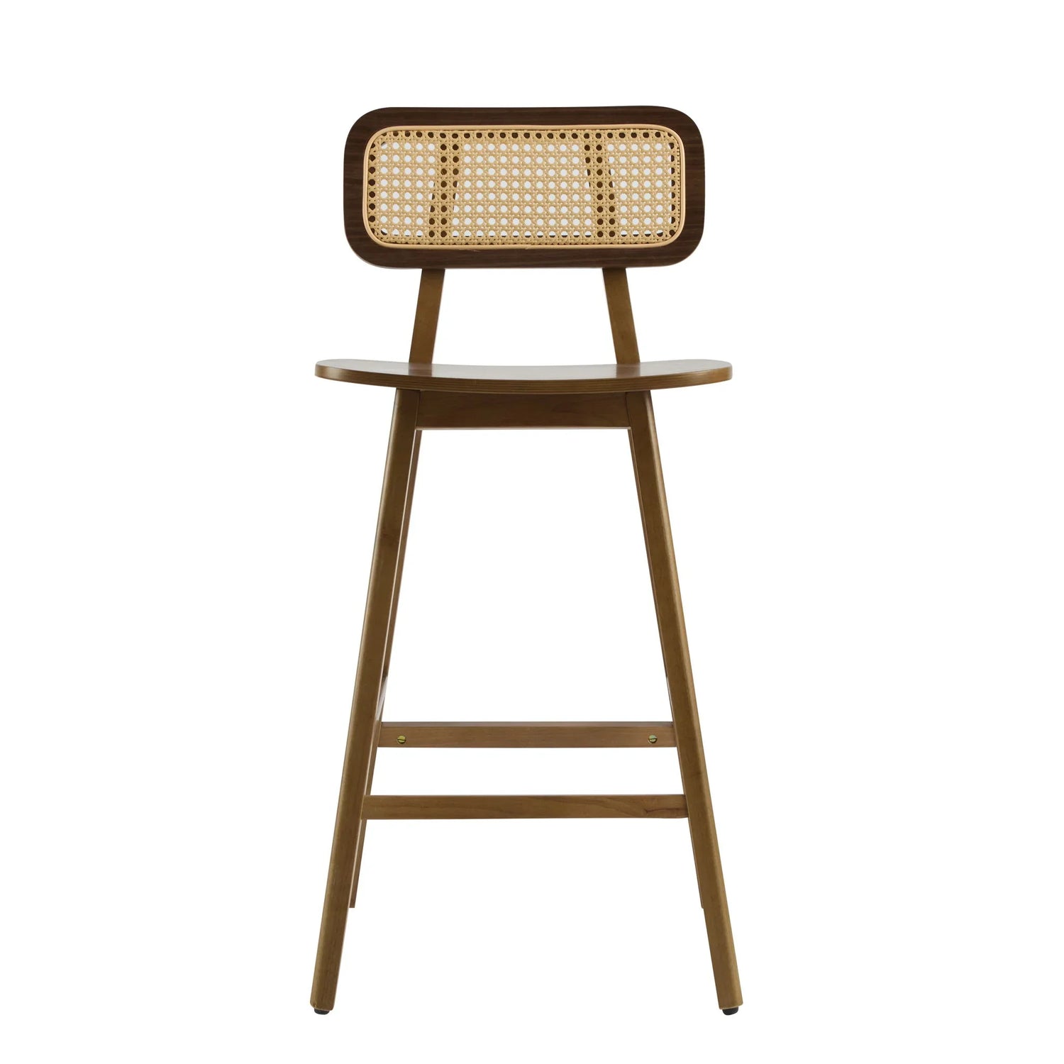 Bari - Indoor Wood Barstool (Set of 2) With And Rattan Backrest - Natural