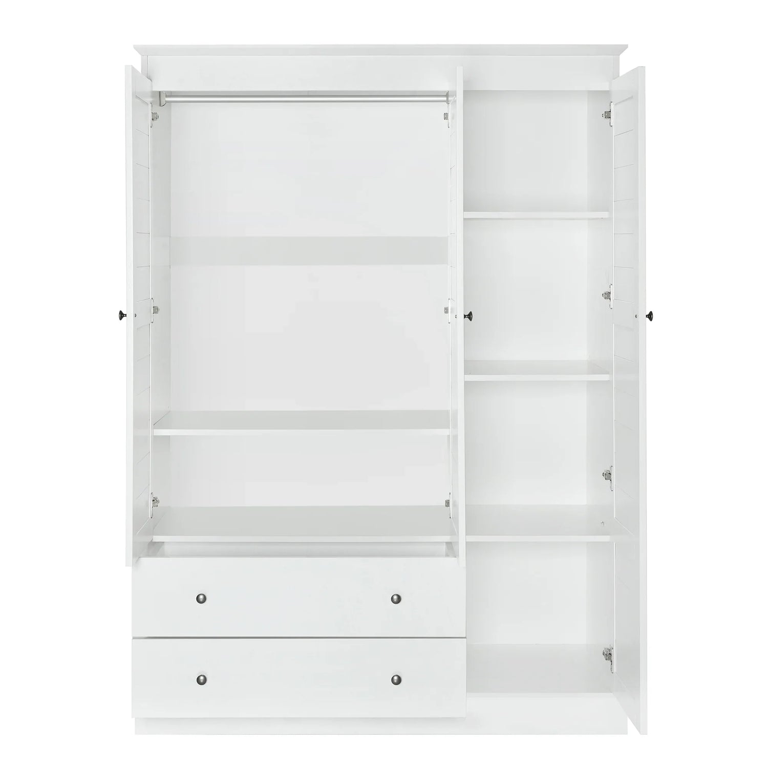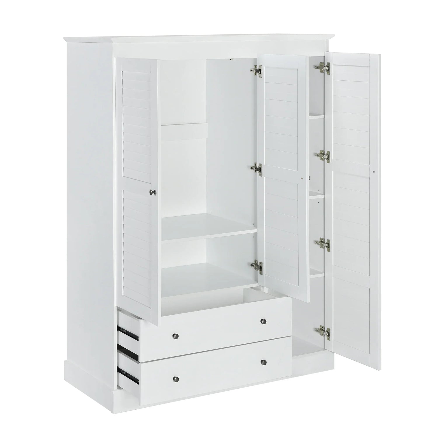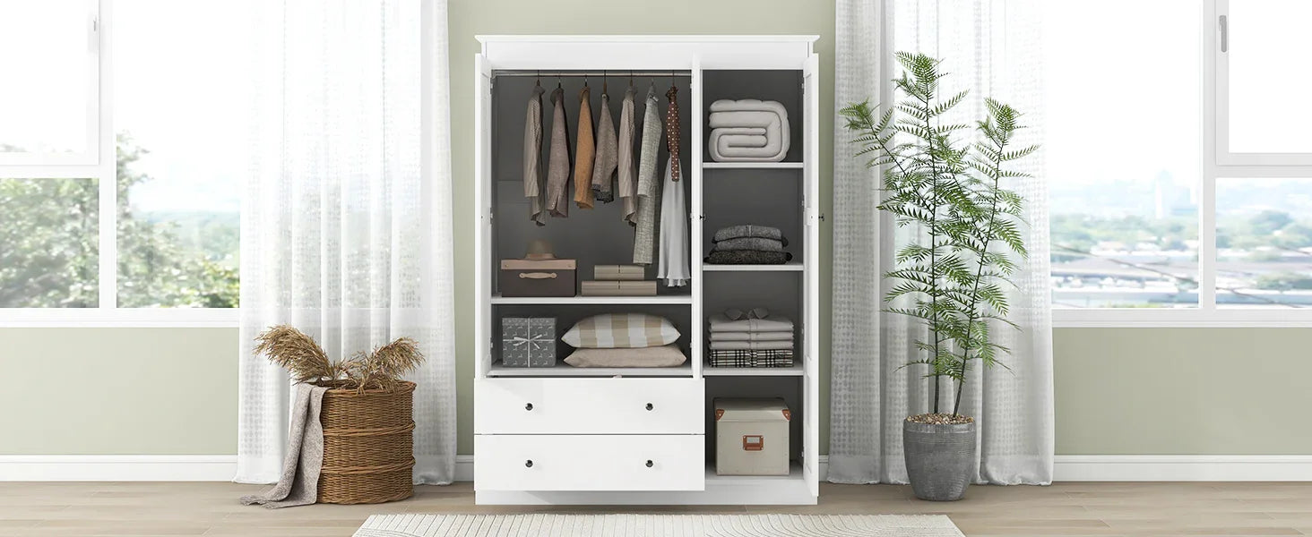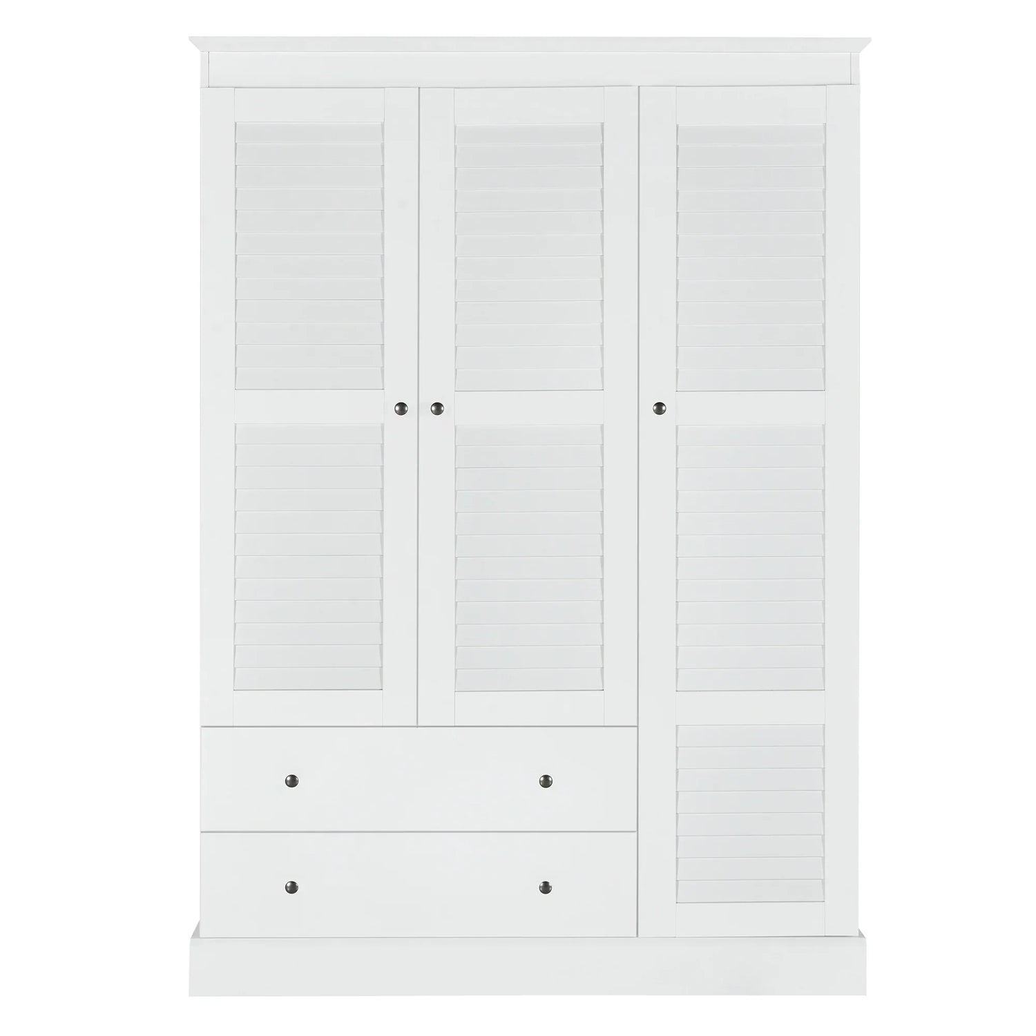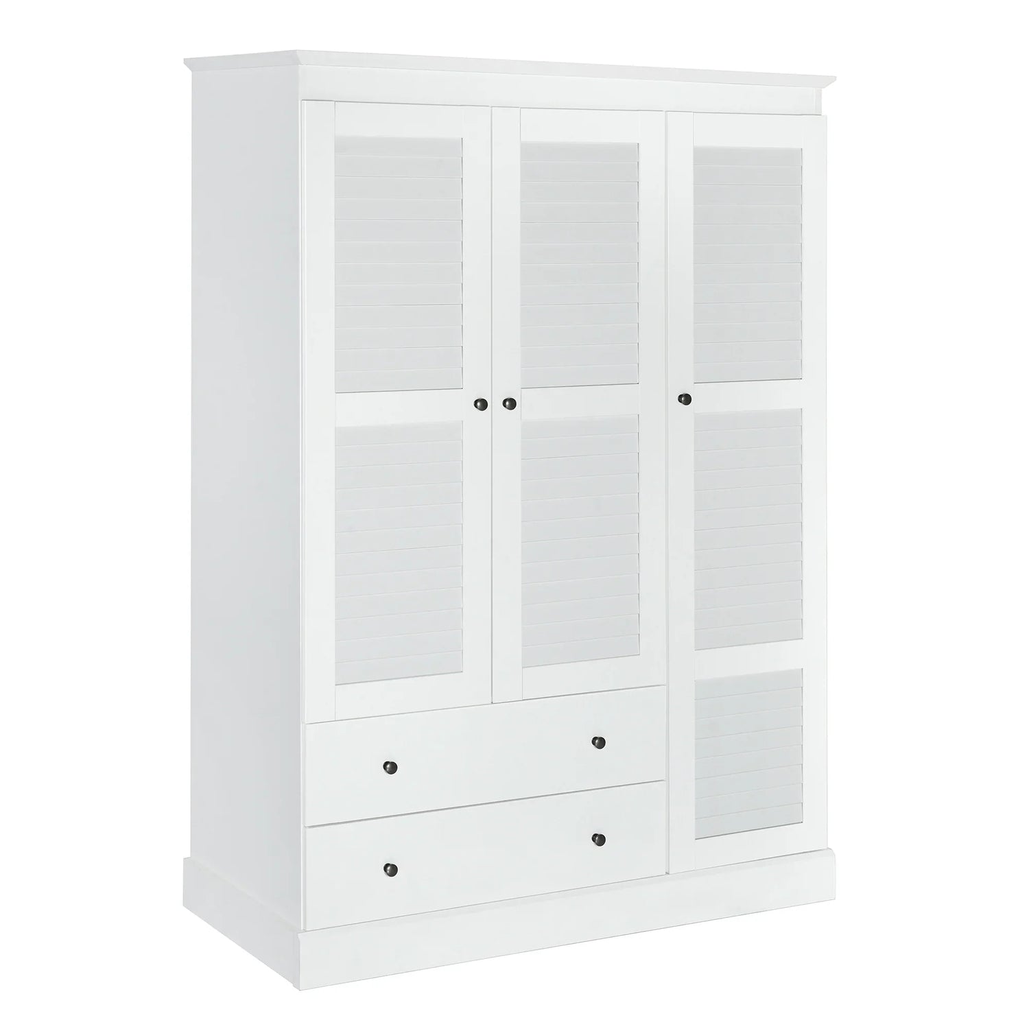 3 Shutter Door Wardrobe Armoire Closet with 2 Drawers, White