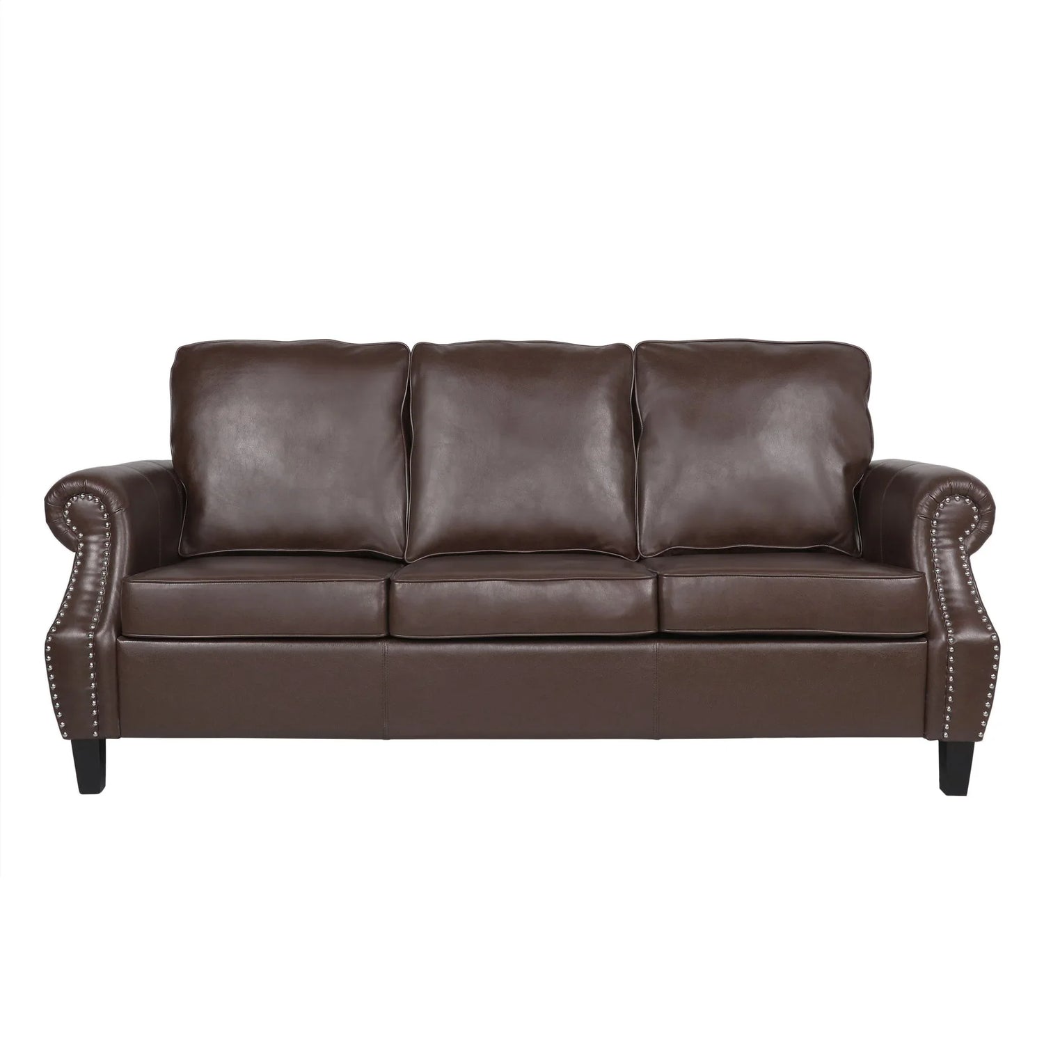 - Contemporary Design: Featuring beautiful faux leather upholstery, rolled armrests, and nailhead trim, our three-seater sofa offers the look, feel, and design of a truly contemporary piece.