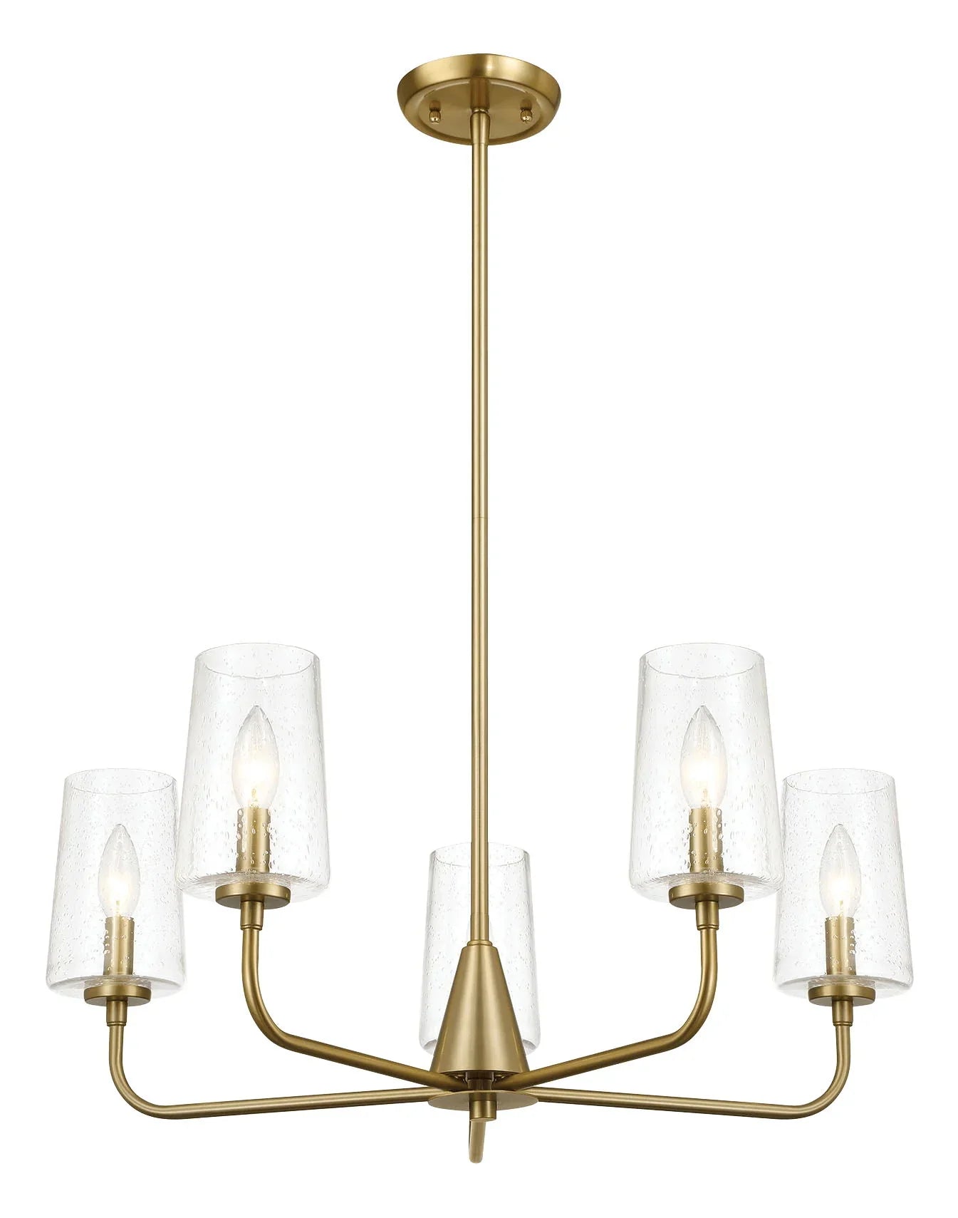 - Elegant Design: The Dazzle Five Lights Chandelier features clear seeded glass and a satin brass finish, adding a touch of elegance and sophistication to any room.