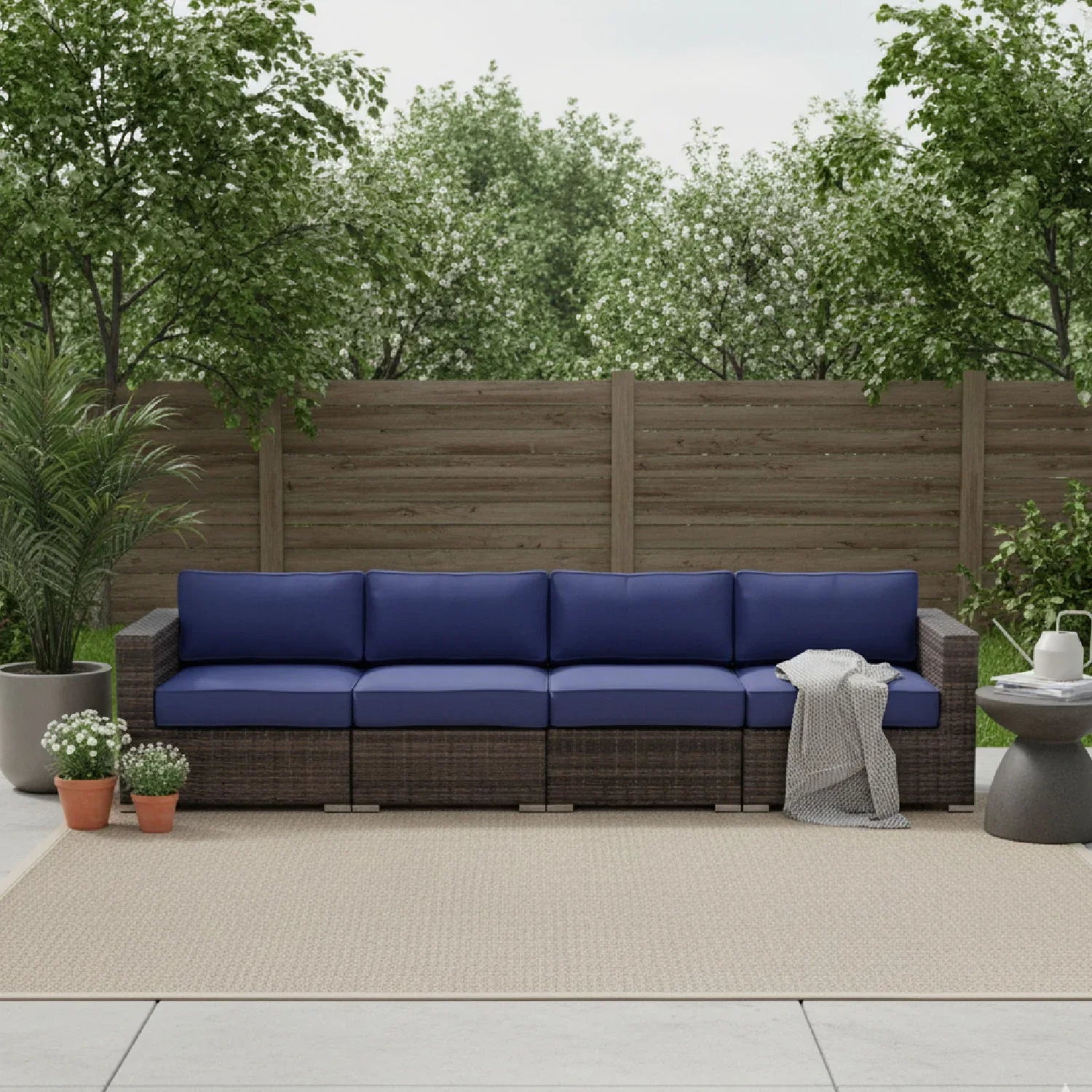 Outdoor Wicker Patio Sofa Set With Feet, 4 Piece Modular Design, Weather Resistant Rattan - Espresso